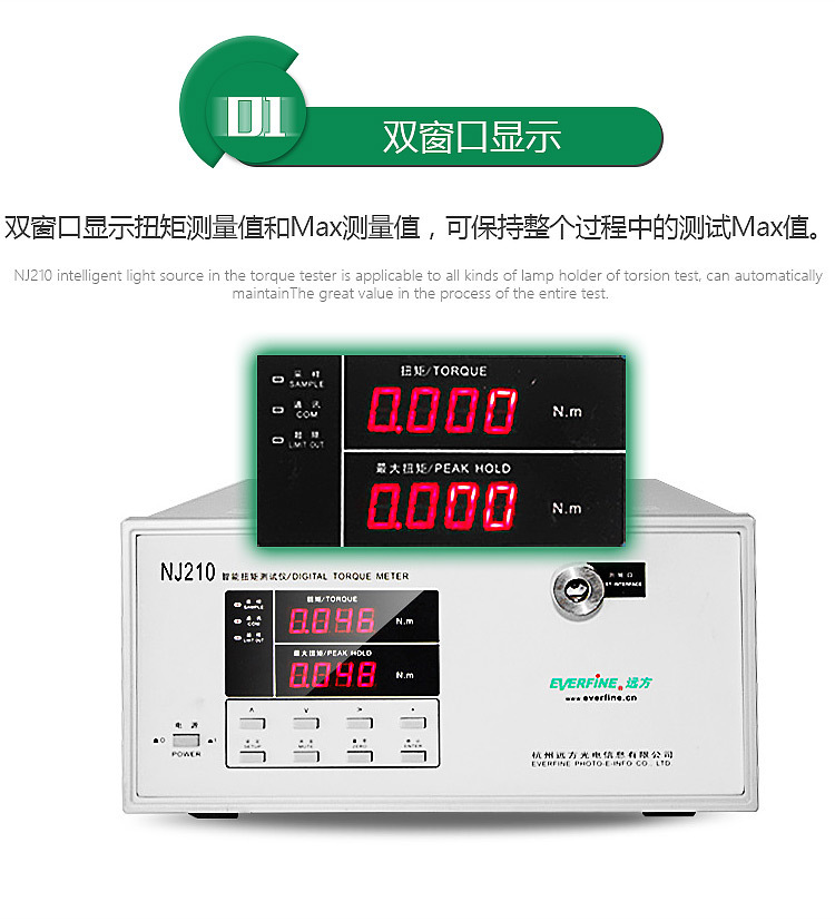 Интеллектуальный моментный тестер Everfine/Yuanfang Nj210, двойной дисплей, установка верхнего предела момента