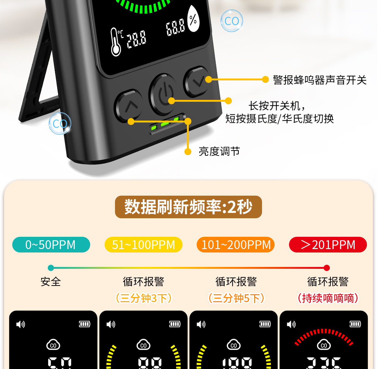 Домашний внутренний детектор угарного газа температура и влажность 3 в 1 GC300 детектор горючих газов зарядка
