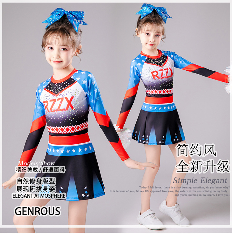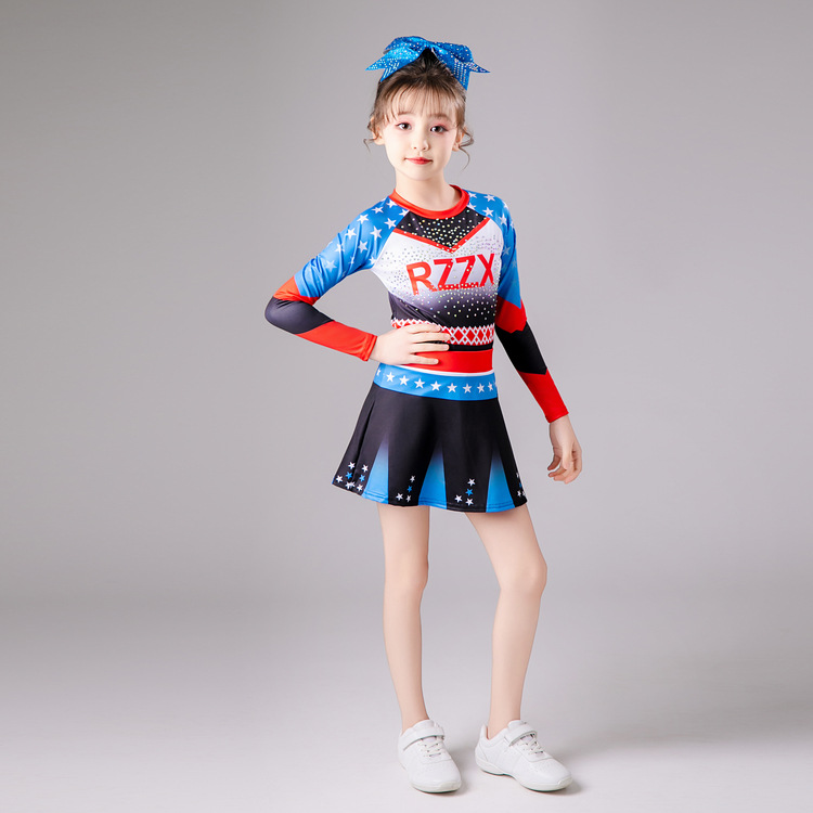 Одежда для выступлений чирлидеров для детей, длинные рукава, новая одежда для выступлений, костюмы для аэробики