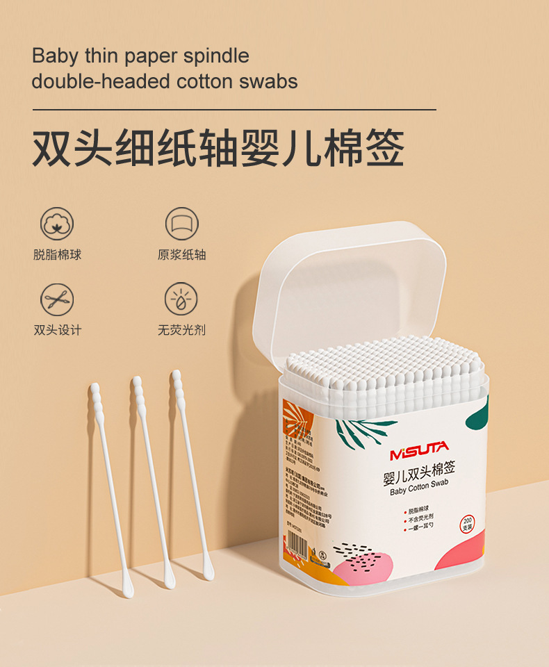 Мисута детские ватные палочки, ушные палочки для малышей, ушные ложки, новорожденные двусторонние тонкие ватные палочки