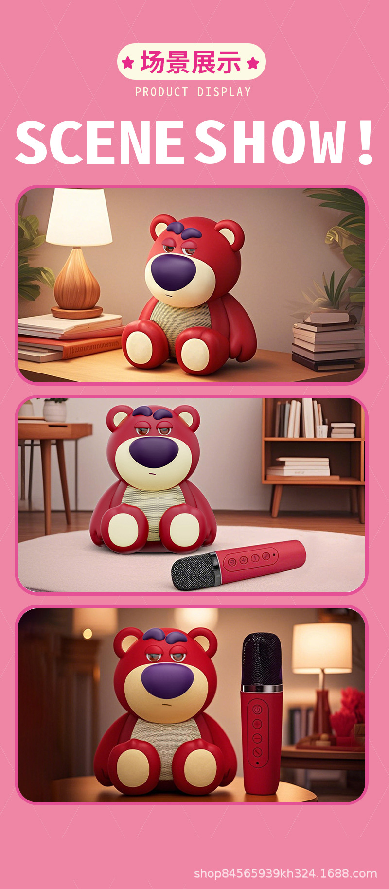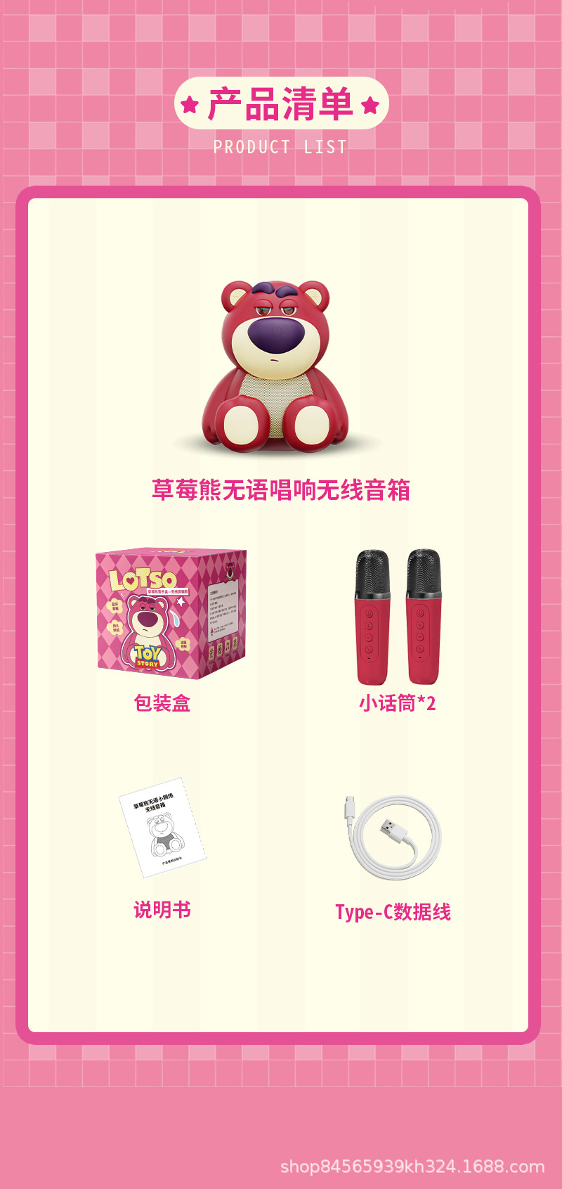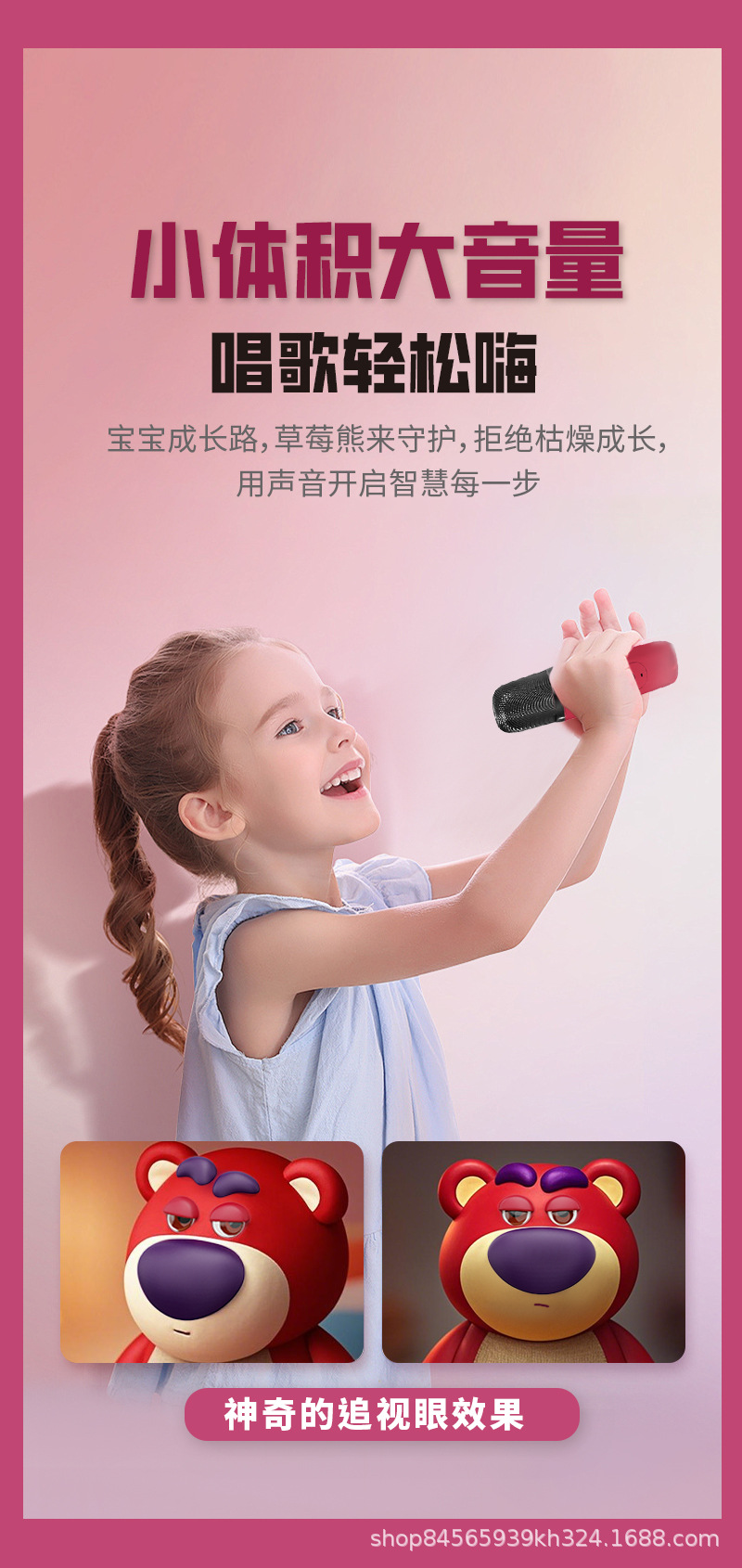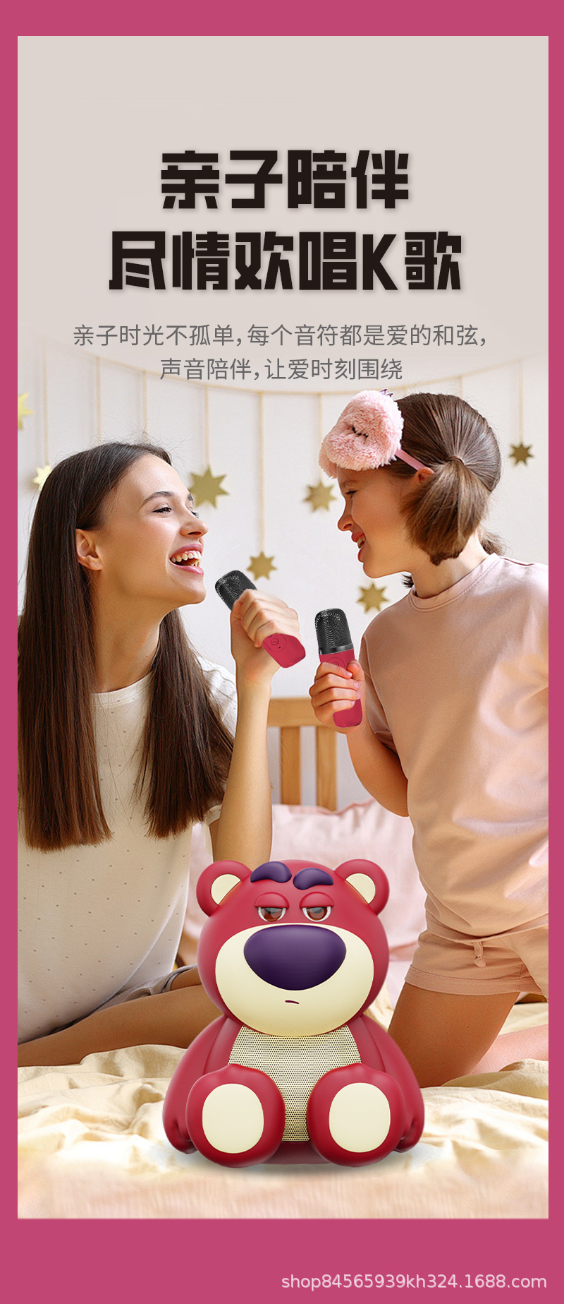 Беспроводная Bluetooth колонка Disney Strawberry Bear, комплект из двух микрофонов, маленький стальной караоке-колонка, подарок на день рождения