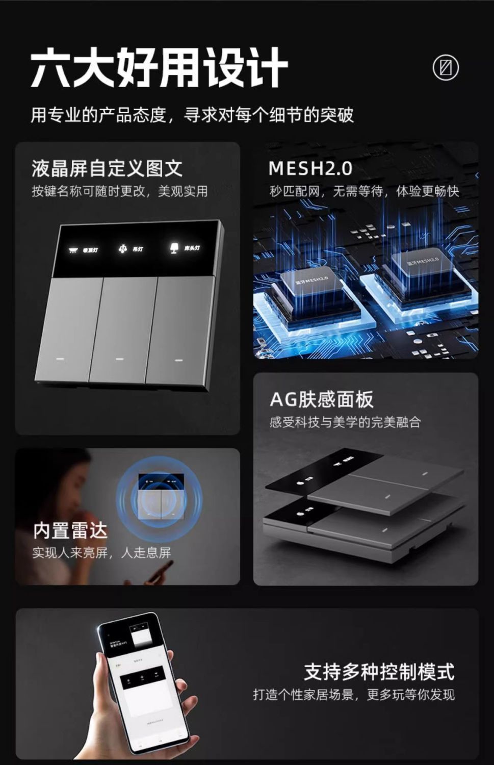 Беспроводной смарт переключатель Zhengshang Hf1 Bluetooth Mesh2.0, панель управления 86 типа, версия без нуля