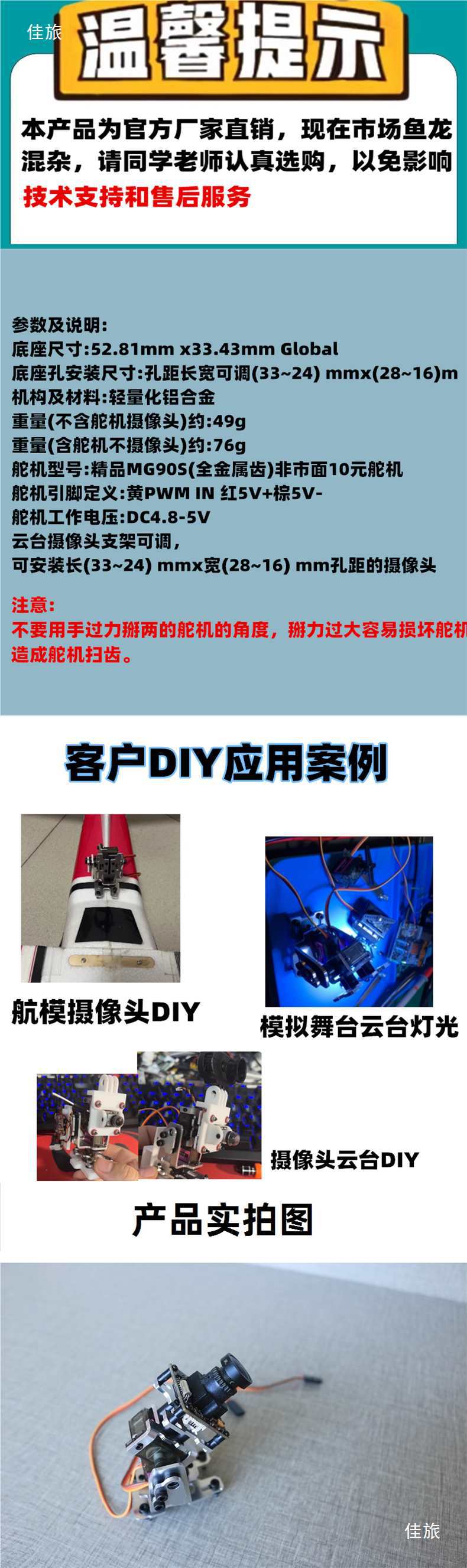 FPV система отслеживания головы с двухосевым сервоприводом для модели самолета, кронштейн с двумя степенями свободы, алюминиевый сплав, DIY