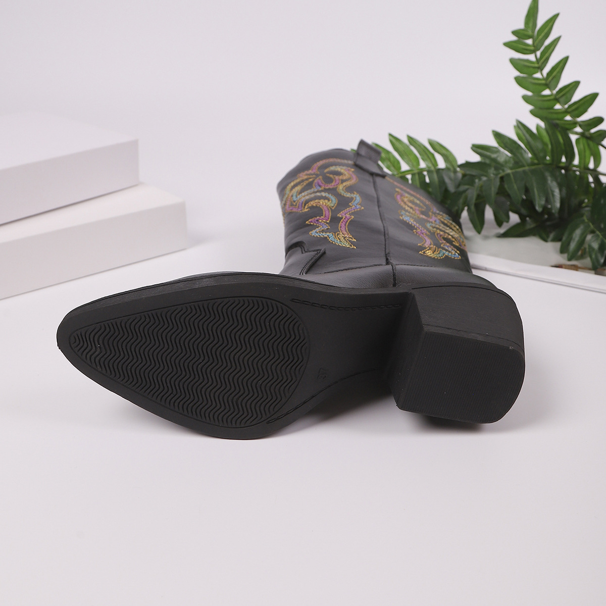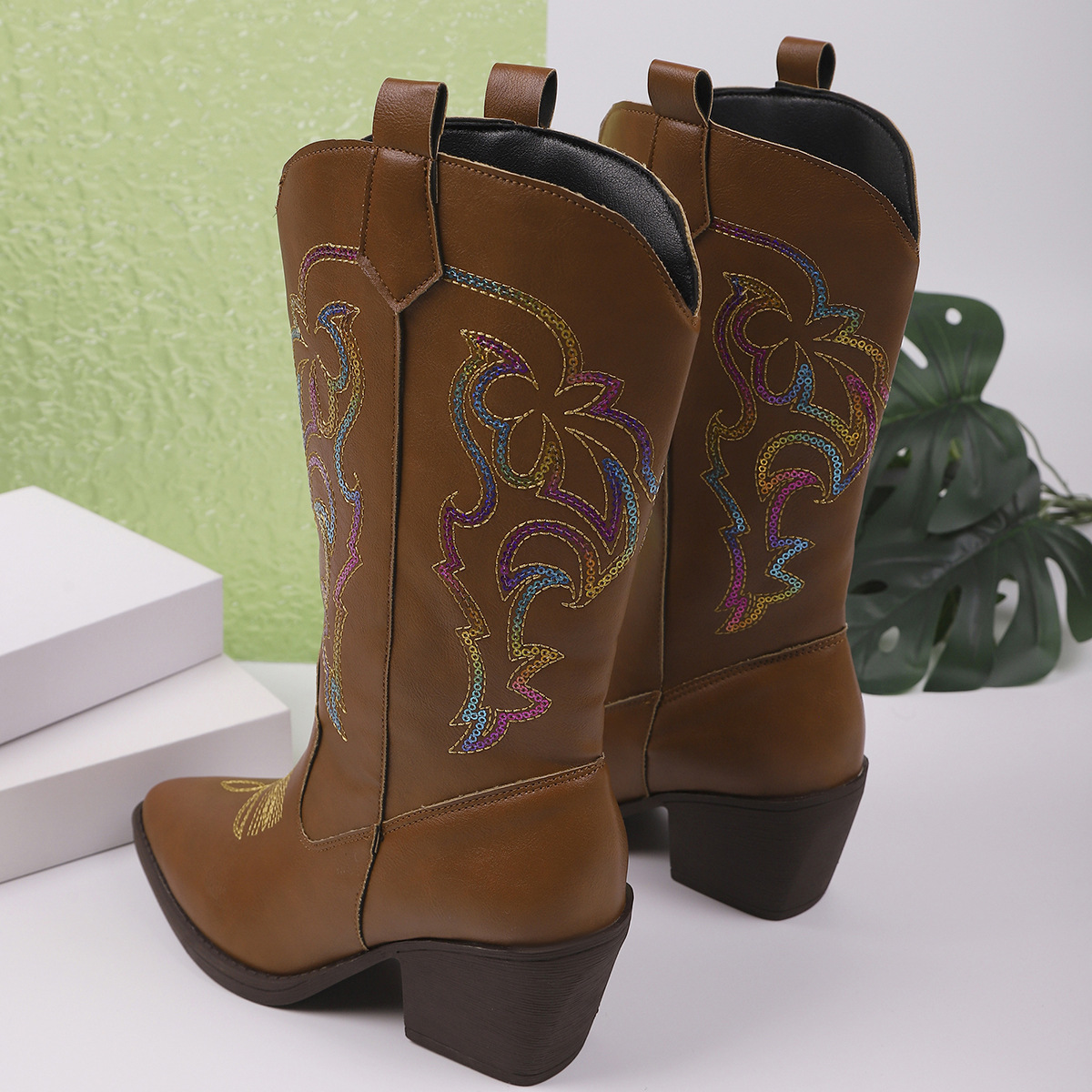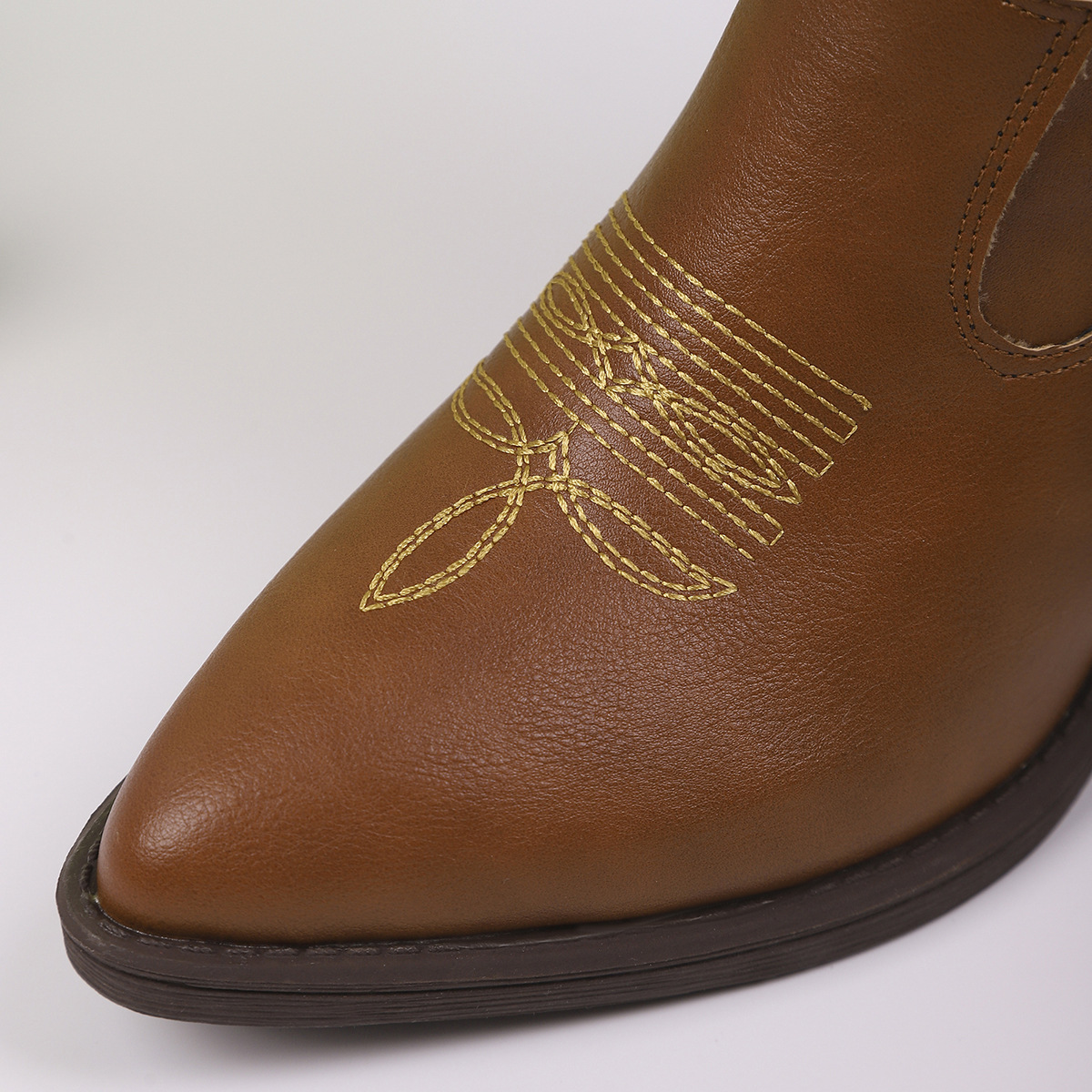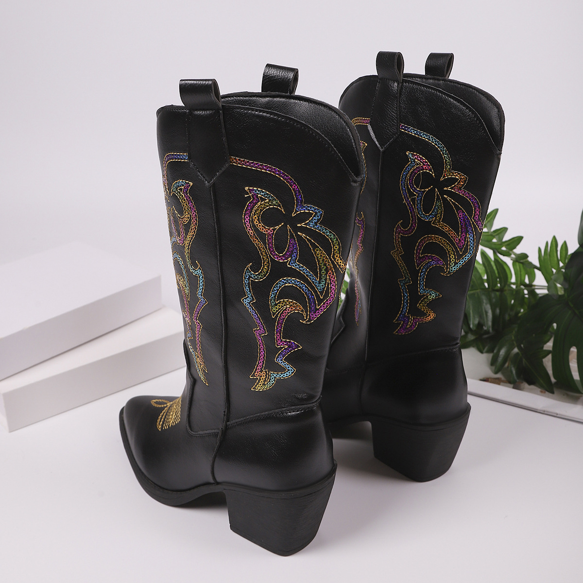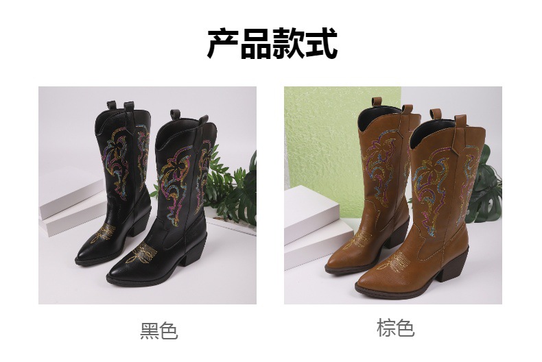 Ботинки вестерн с V-образным вырезом и пайетками, женские с средним каблуком, остроносые рыцарские ботинки, большие кожаные ботинки