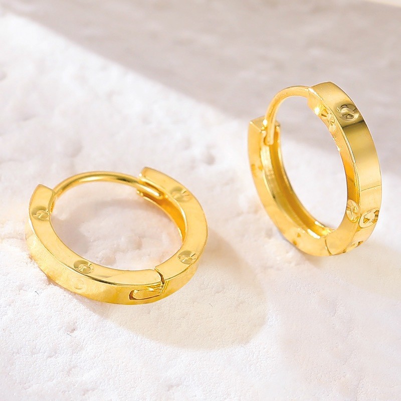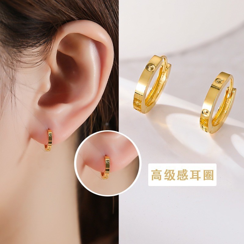 Серьги Qianxin из 18K золота с шестью удачами, женственные и элегантные Au750, с двойными кольцевыми застежками