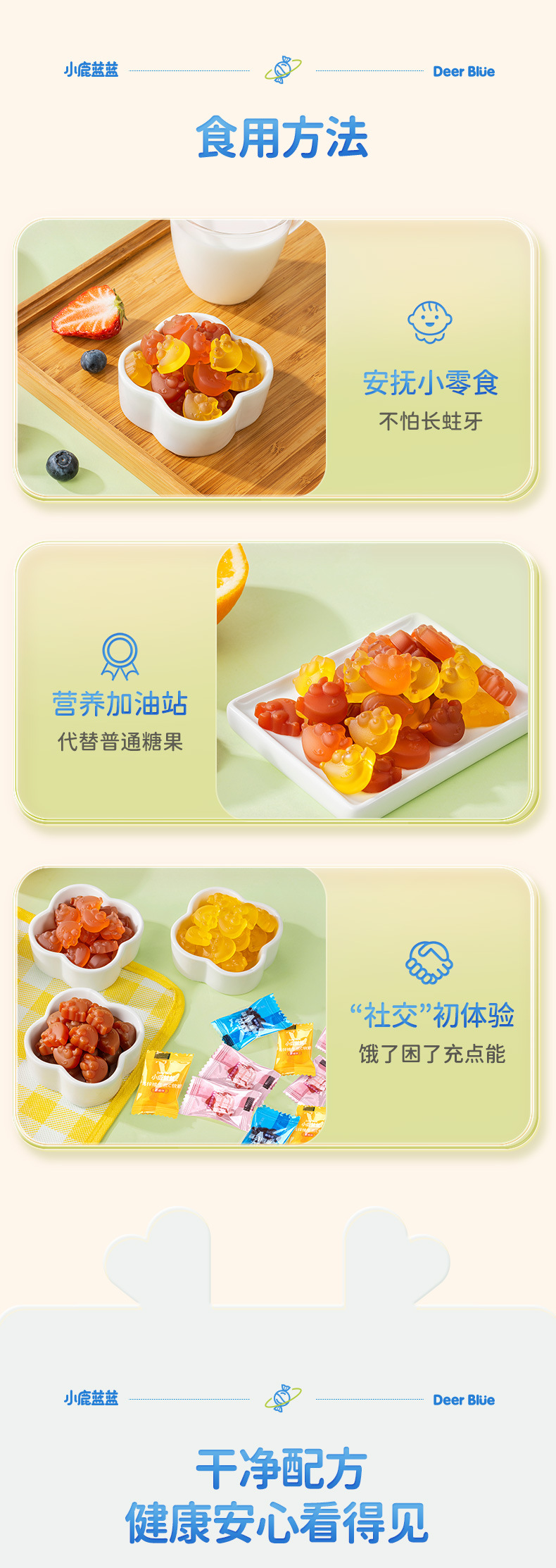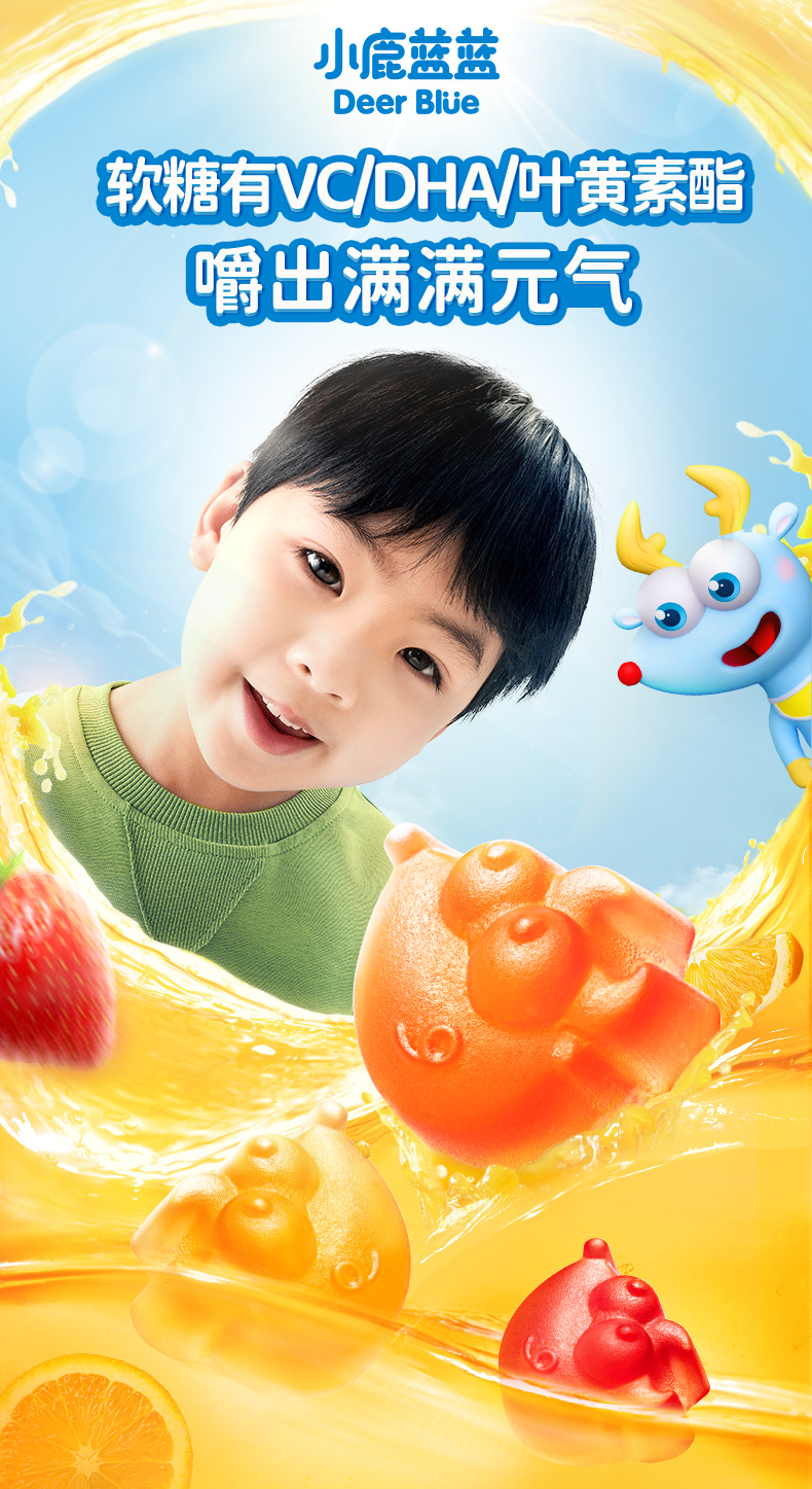 Жевательные витамины Little Deer Lanlan с DHA, маслом водорослей, высоким содержанием цинка, витаминами C и лютеином, детский перекус