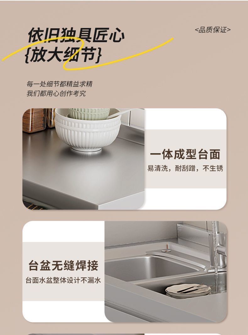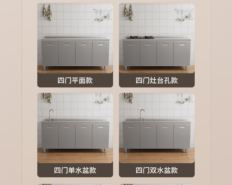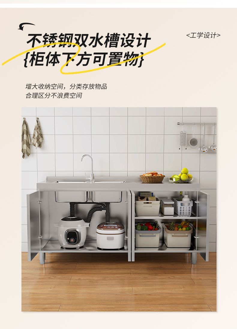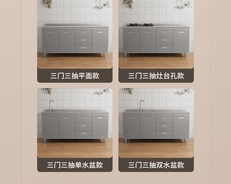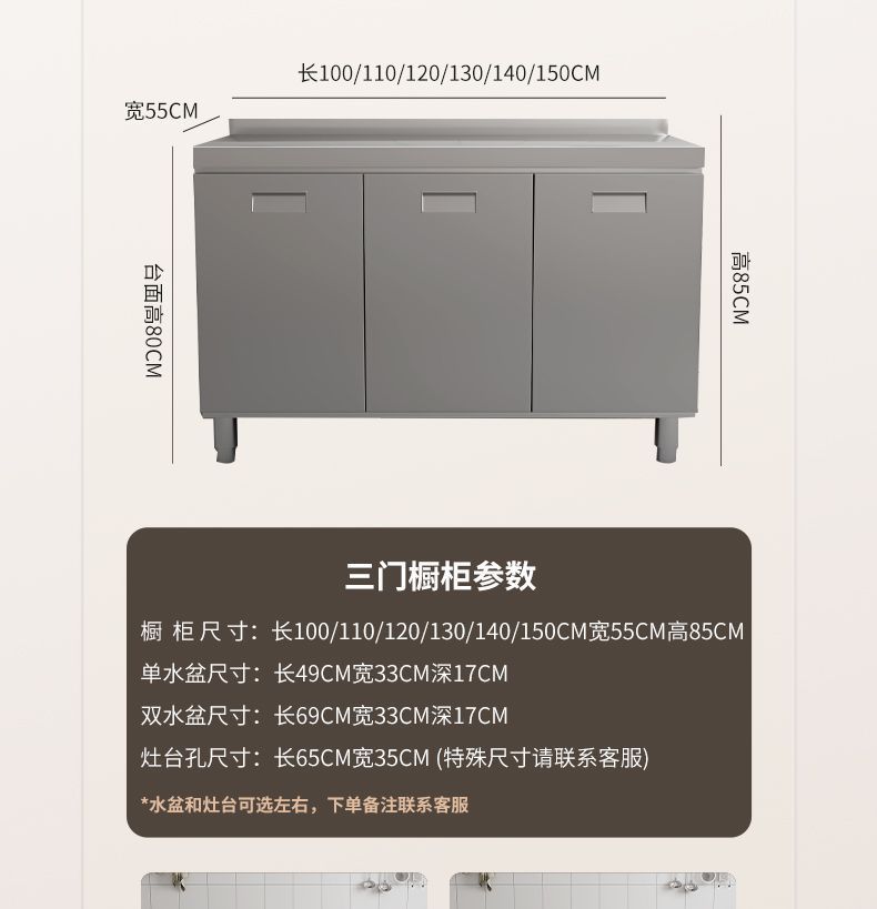 Кухонные шкафы из нержавеющей стали 304, простые шкафы для хранения, сельский кухонный шкаф, интегрированный с коммерческим использованием, для малых квартир