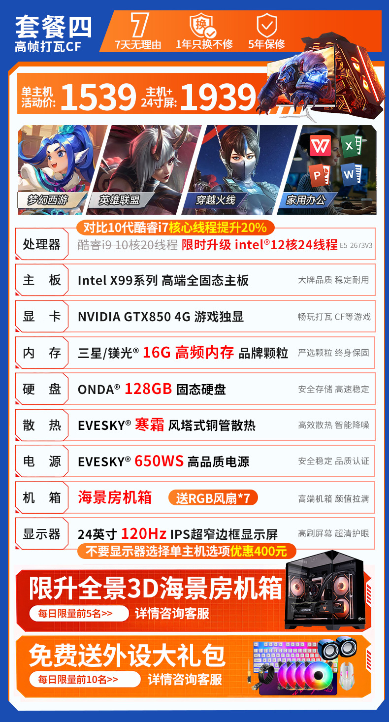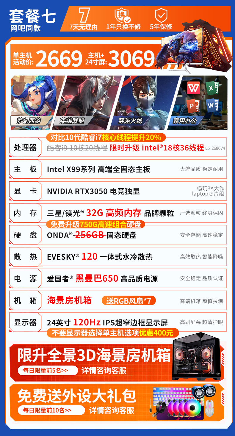 ![]() | Single host + 24-inch 120hz high refresh rate monitor | Package seven | ¥3069.0 / ≈ 37 016 ₽ | 500 | 5927997725023 | |