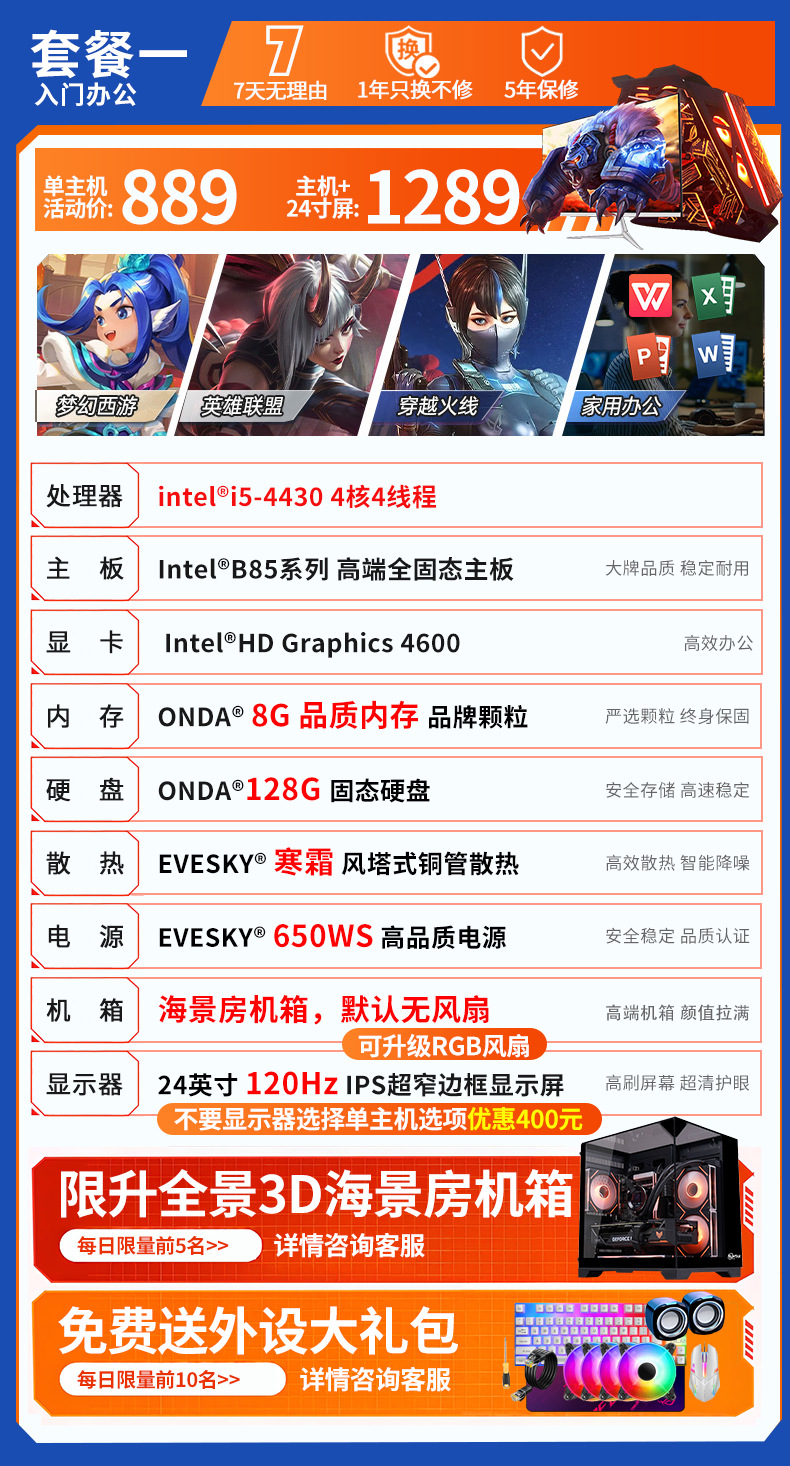 ![]() | Single host + 24-inch 120hz high refresh rate monitor | Package one | ¥1289.0 / ≈ 15 547 ₽ | 497 | 5926632608981 | |