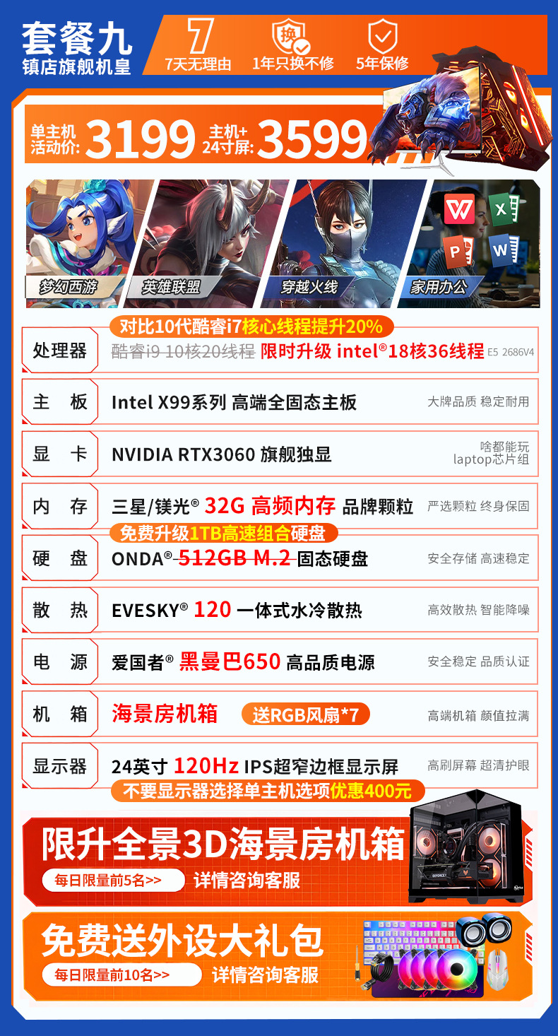 ![]() | Single host + 32-inch 2k180hz high refresh rate display | Package seven | ¥3769.0 / ≈ 45 458 ₽ | 500 | 5927997725028 | |
