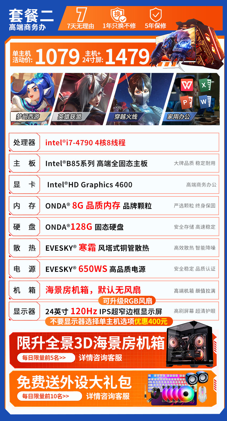 ![]() | Single host + 24-inch 120hz high refresh rate monitor | Package 2 | ¥1479.0 / ≈ 17 838 ₽ | 500 | 5926632608988 | |