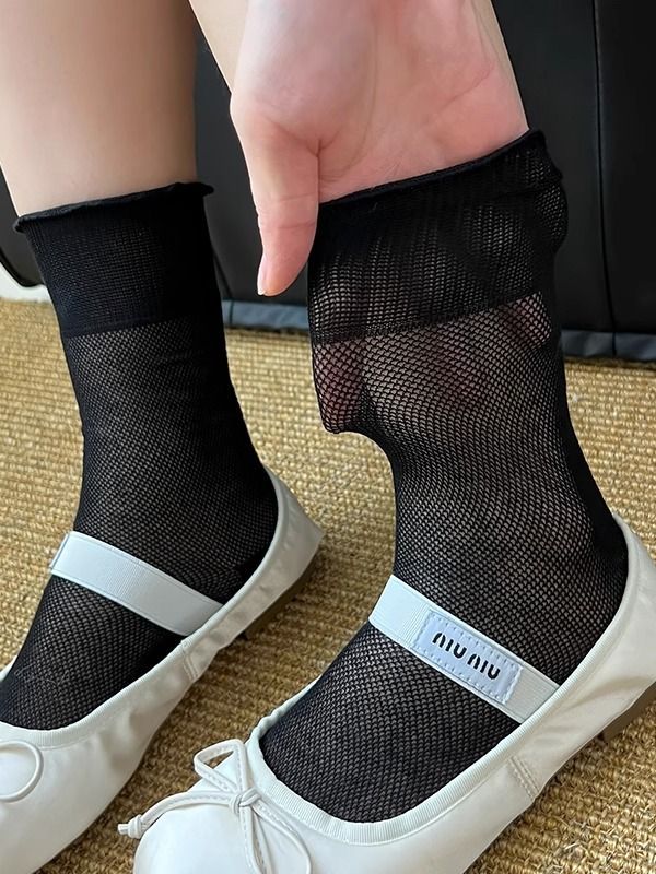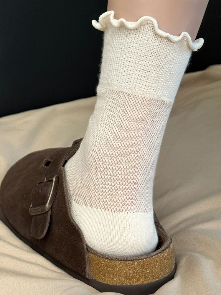 Маленькие Белые Чулки на Лето Здесь~ Простые и Універсальные, Очень Сладкие! Сетчатый Дизайн Полон Воздухопроницаемости!