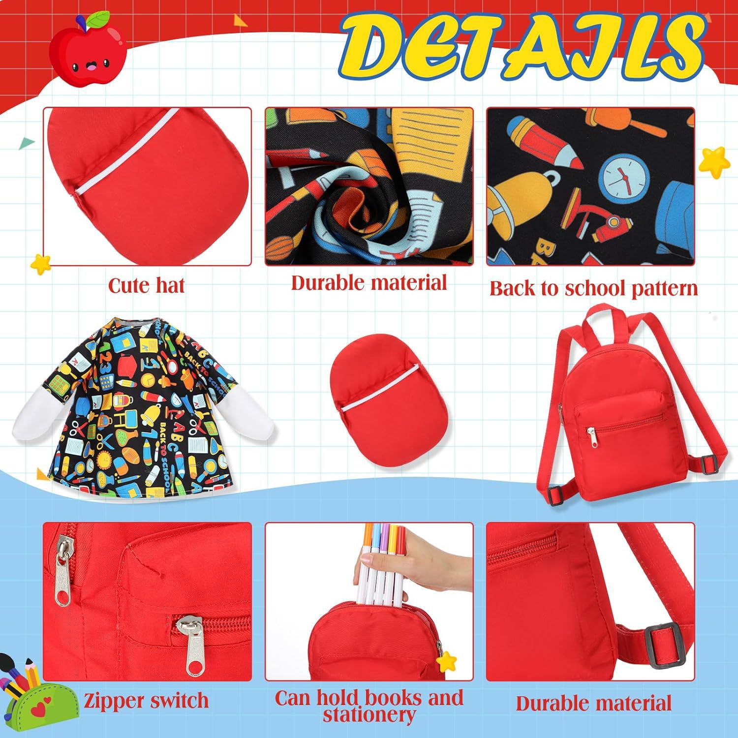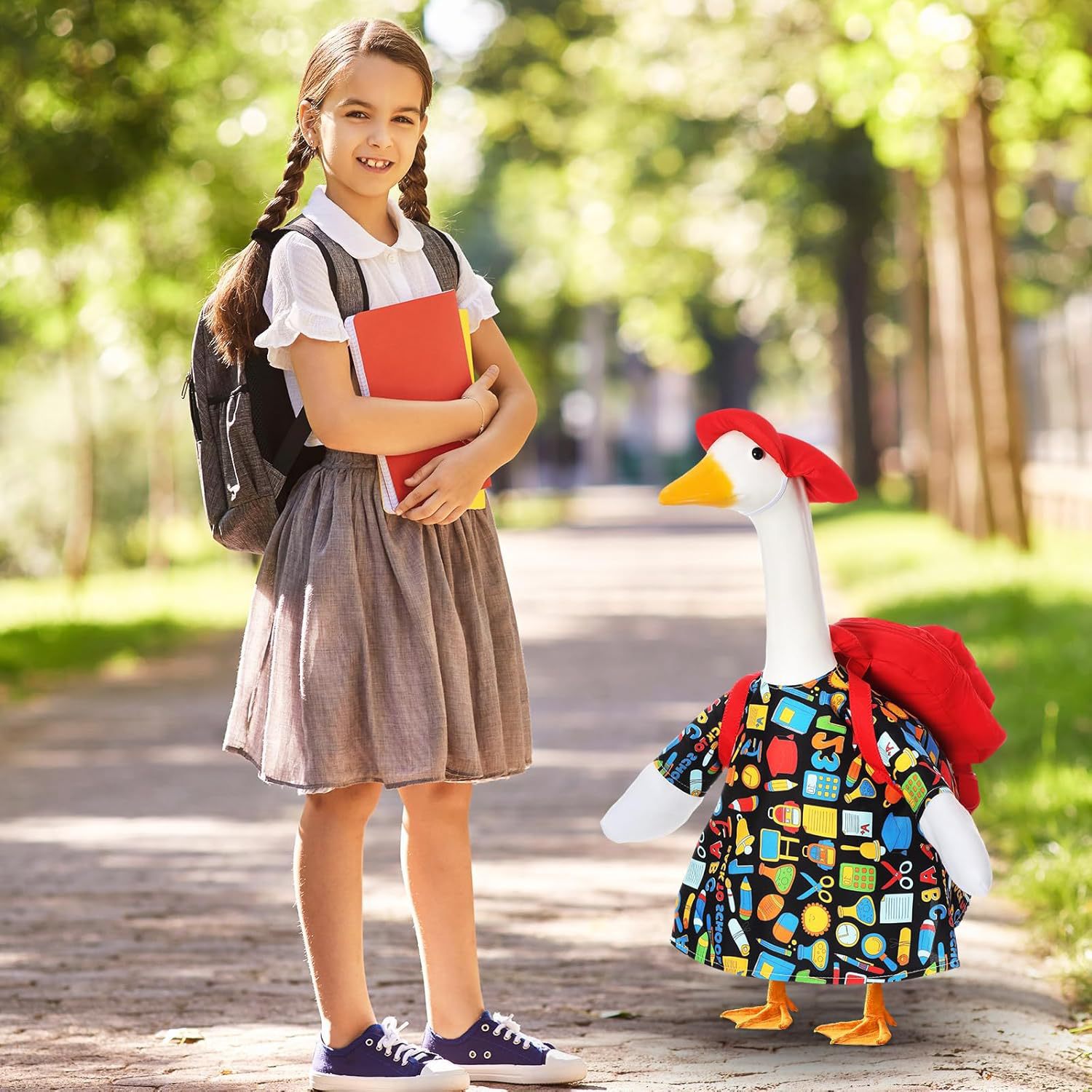 Комплект гусей для школьного сезона, подходит для 23 дюймовой пластиковой статуи, одежда для гусей с рюкзаком