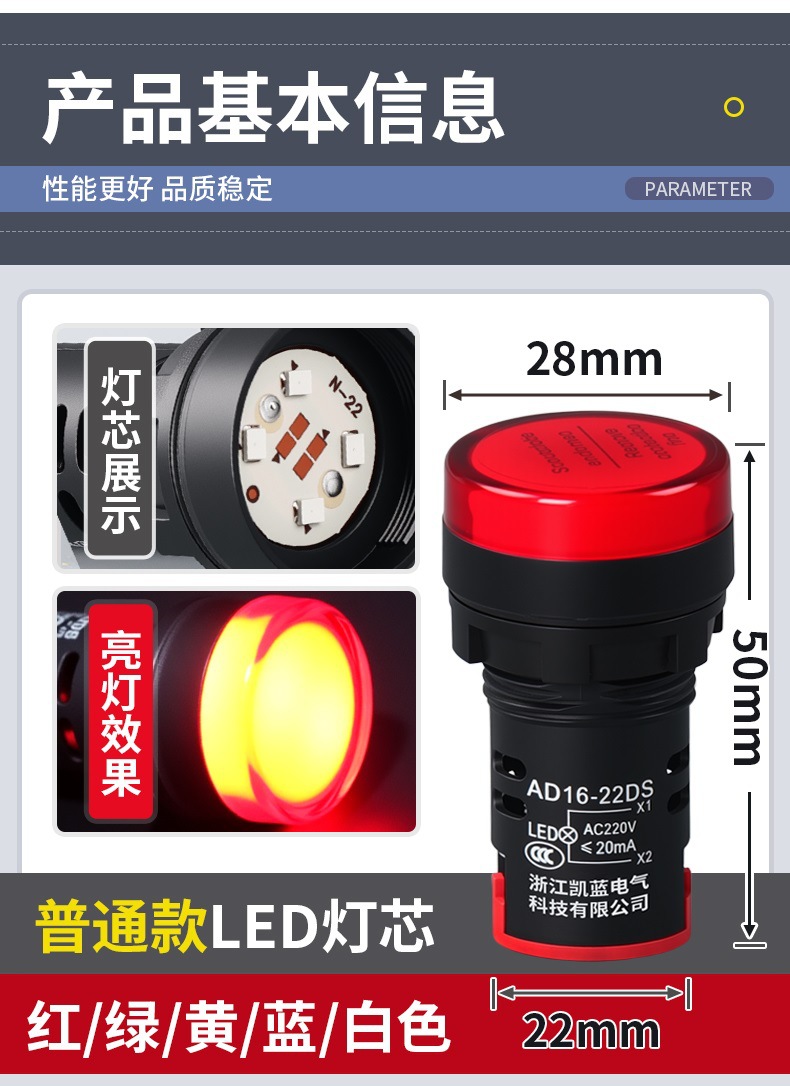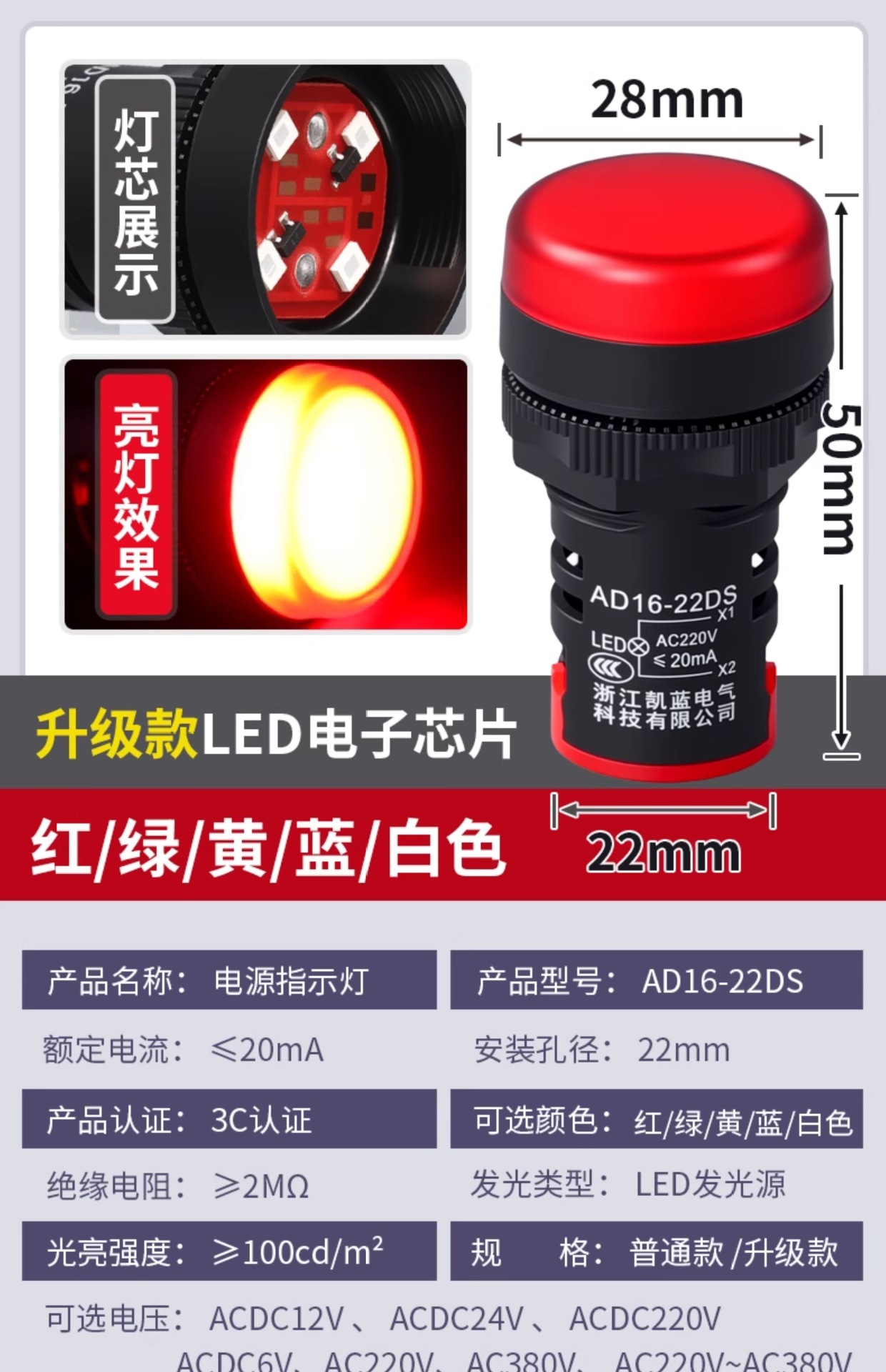 Сигнальный свет Huamo 22 Vad380Vmm12V Индикаторный свет 16 Красный и зеленый Светодиодный источник питания Универсальный 2224 Желтый распределительный короб D