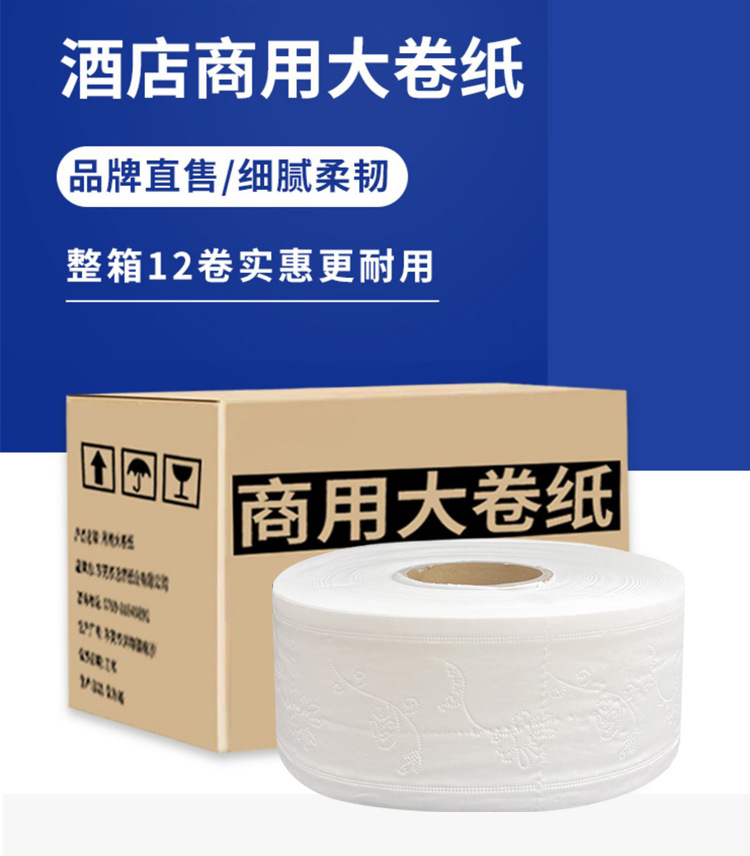 Оптовая продажа больших рулонов бумаги, полный короб 12 рулонов, гостиничная коммерческая туалетная бумага, бумажные полотенца для дома