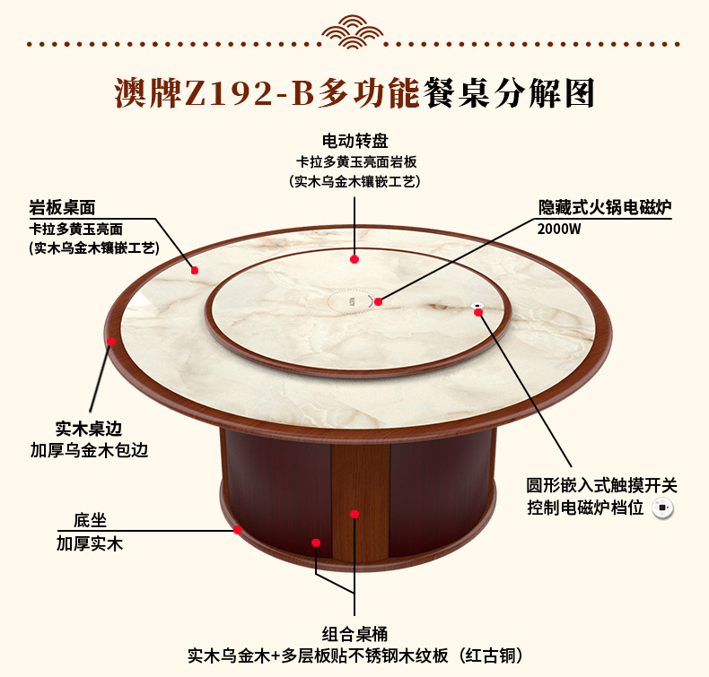 Австралийский бренд Z192-B клубная индукционная плита для хот-пота, интегрированный круглый стол, электрический обеденный стол и стулья на 8-28 человек