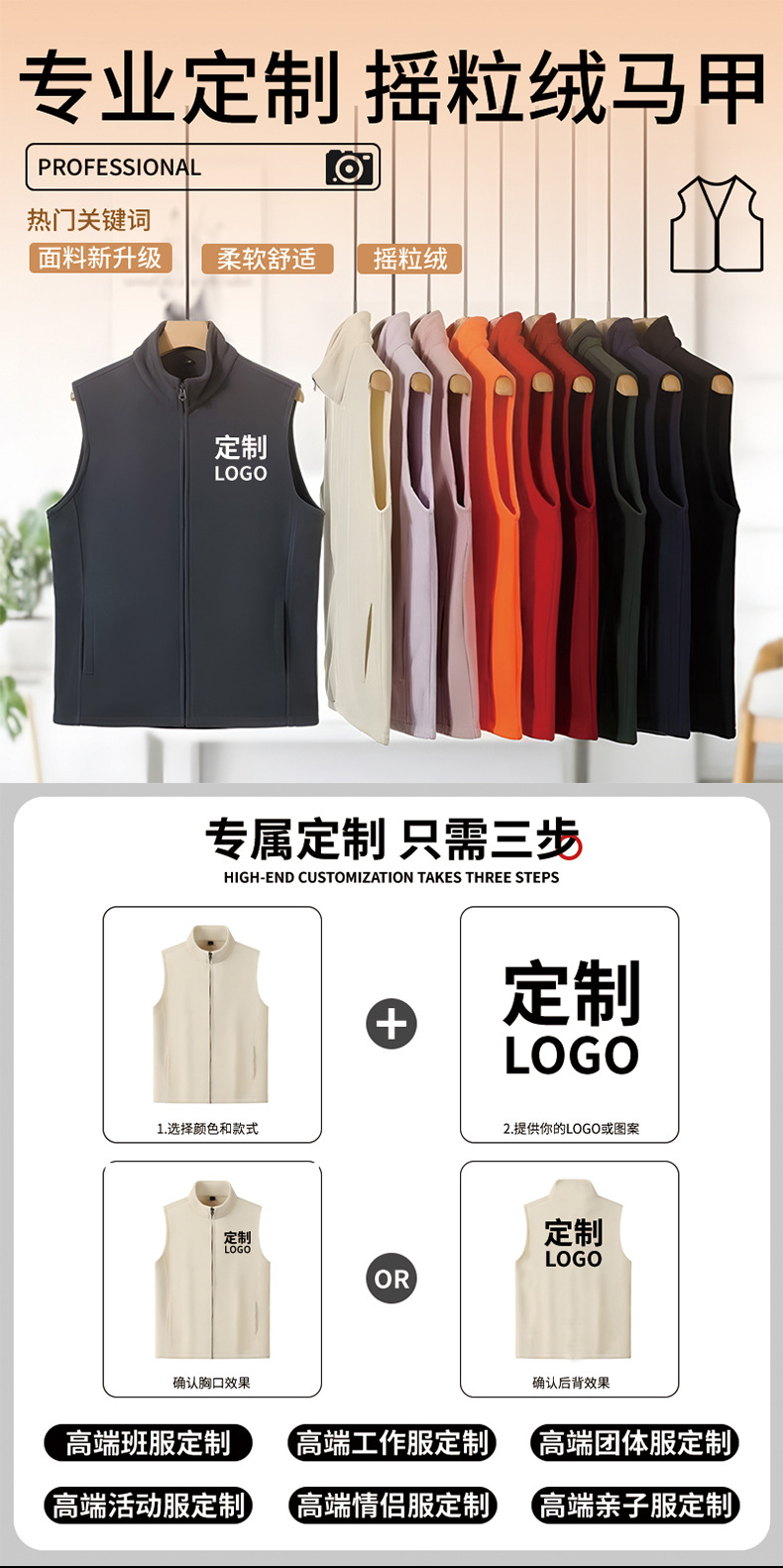 Жилет с высоким воротником для осени и зимы, с вышитым логотипом, флисовый жилет, рабочая форма для команды, корпоративная униформа