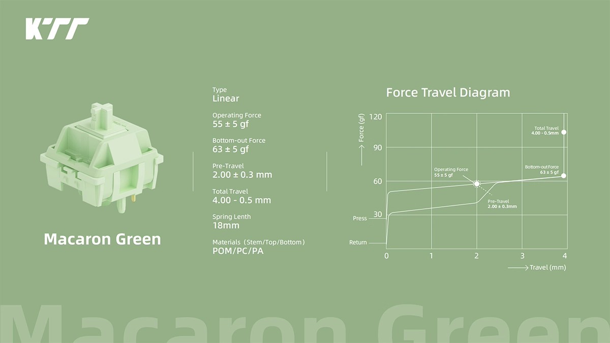 ![]() | Macaron green - linear switches (45pcs boxed) | ¥24.9 / ≈ 300 ₽ | 98 | 6010466125409 | |