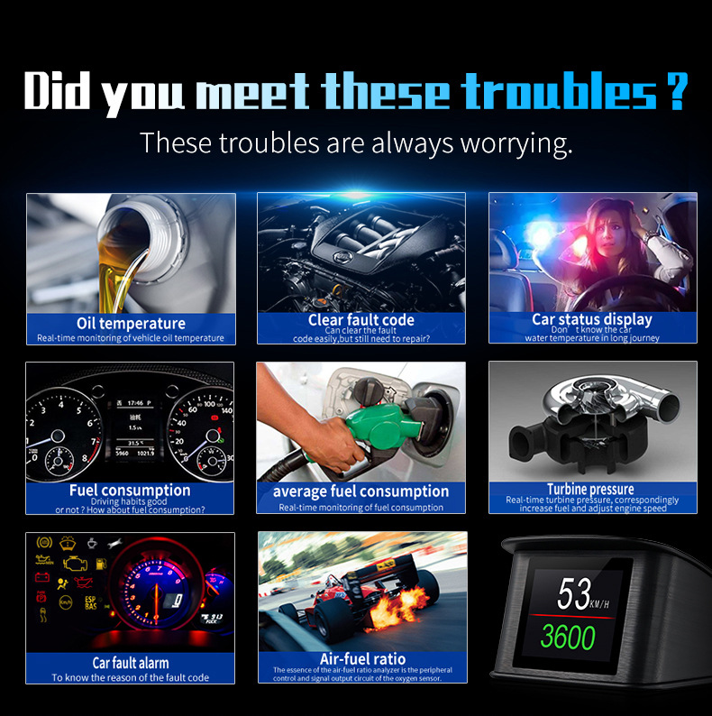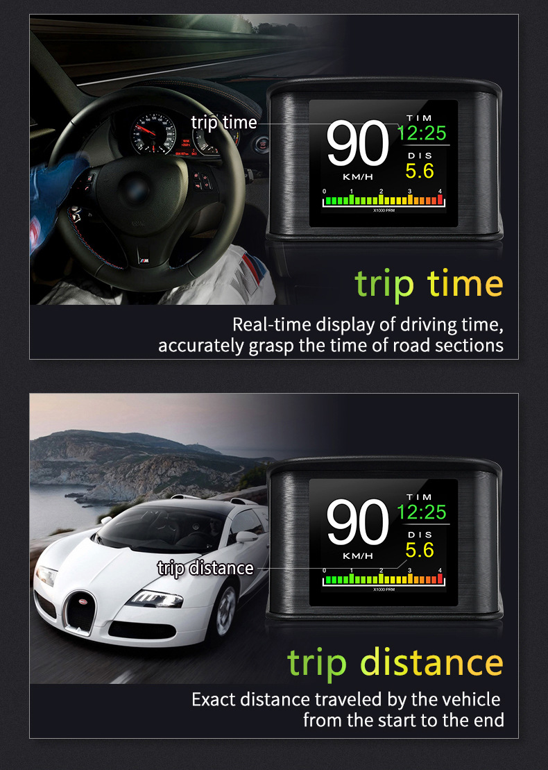 Головное отображение для автомобиля, многофункциональный HUD, OBD, измеритель температуры воды, скорость автомобиля, расход топлива, интеллектуальный компьютер вождения