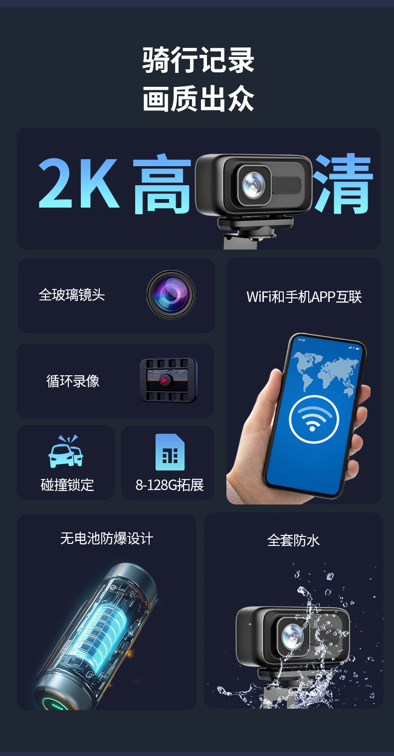 Новый мотоциклетный электрический велосипедный видеорегистратор HD водонепроницаемый видеорегистратор с WiFi для мобильного телефона
