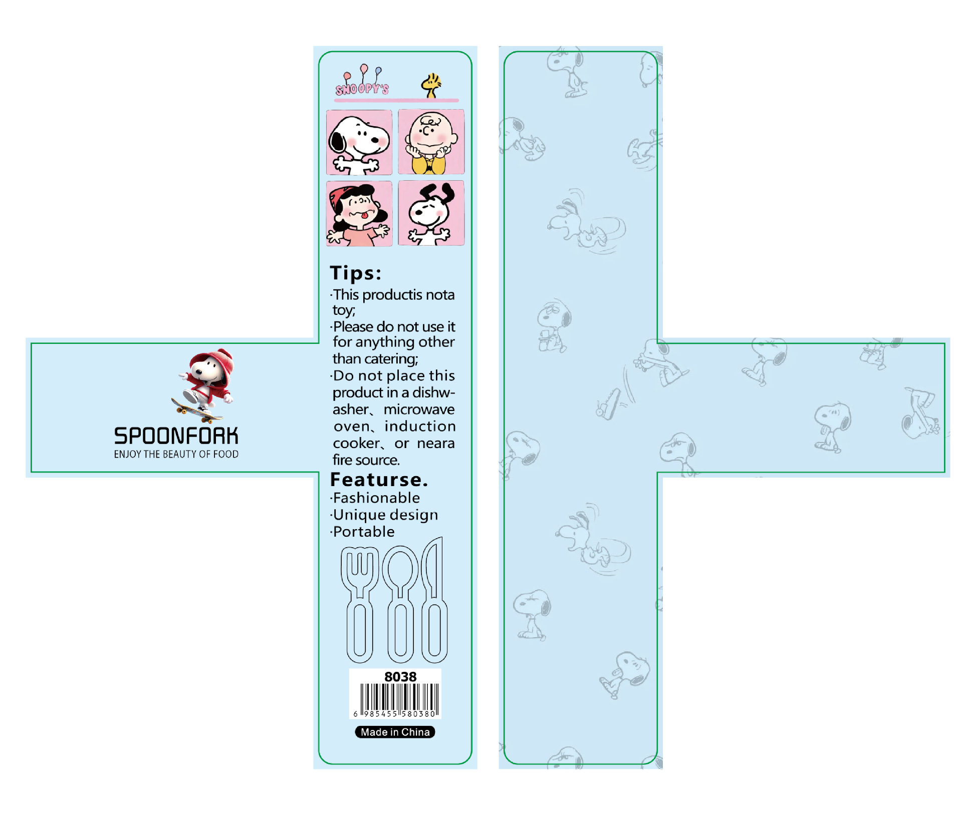 ![]() | Box size 20*5*3cm | Snoopy tableware two-piece set (green hat) | 3шт: ¥6.50, 120шт: ¥6.00, 1200шт: ¥5.50 | 2000 | 6094121559155 | |