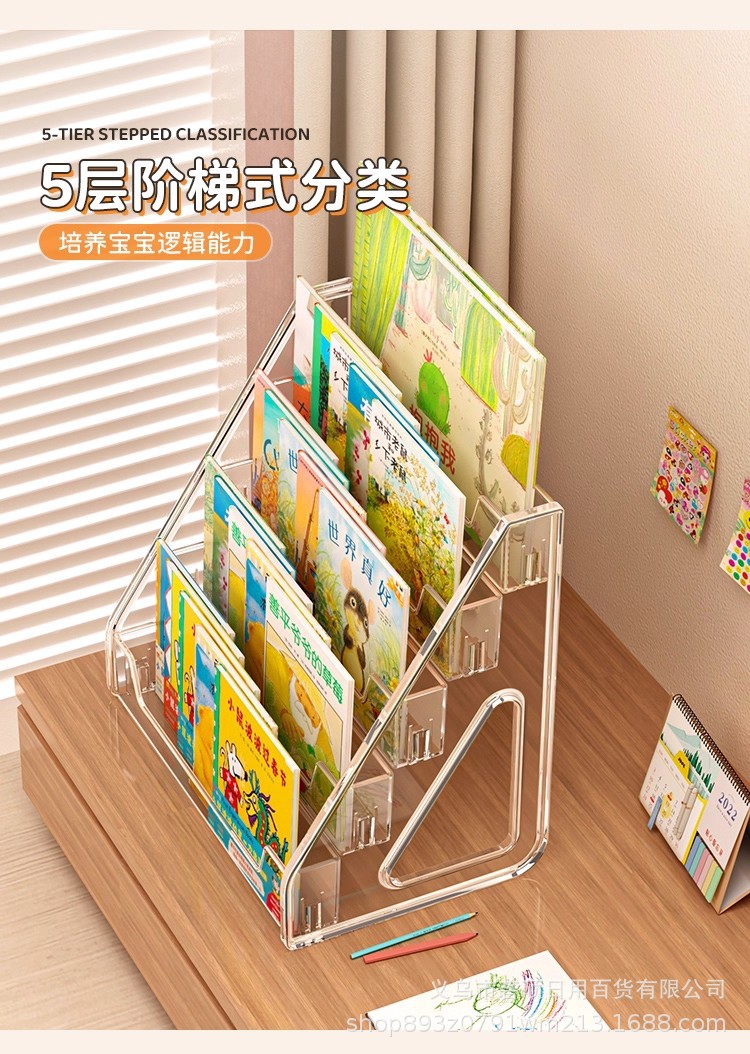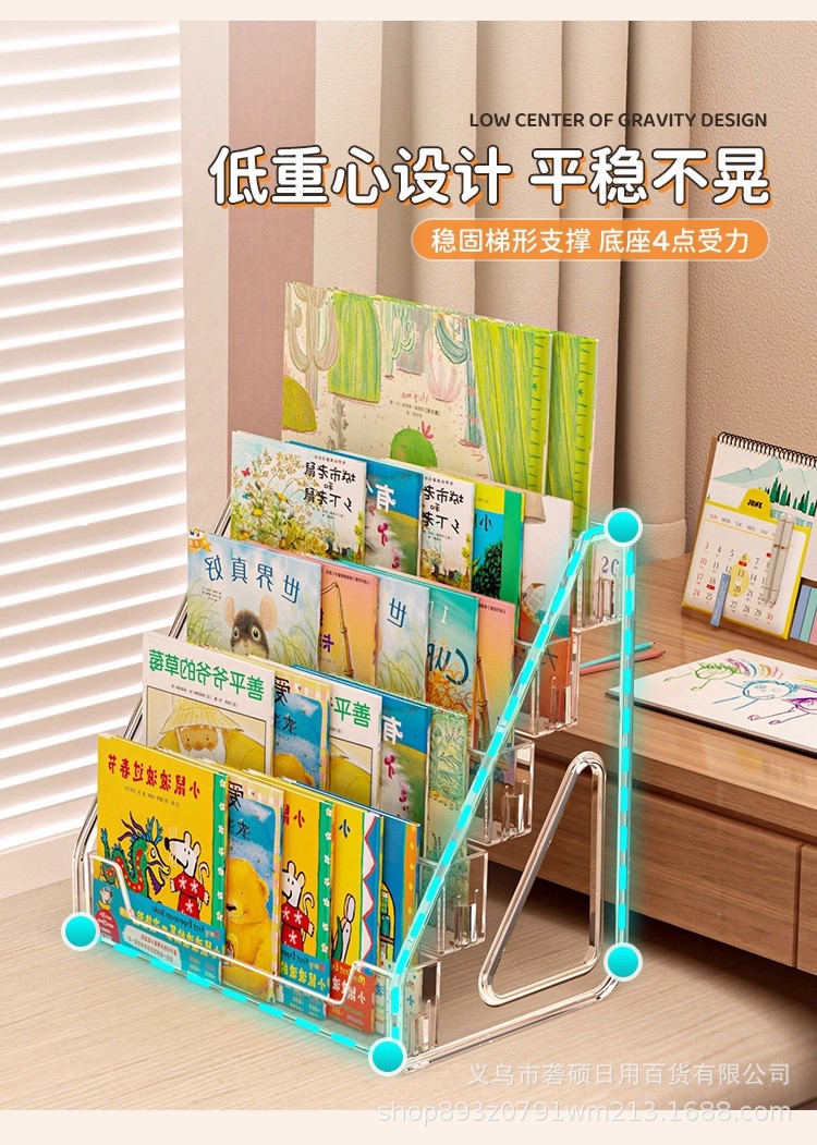 Прозрачная акриловая ступенчатая полка для хранения детских книг Многоуровневая многофункциональная настольная полка для косметики Cd бар хранения