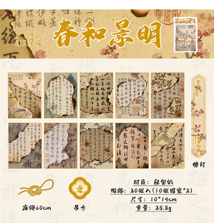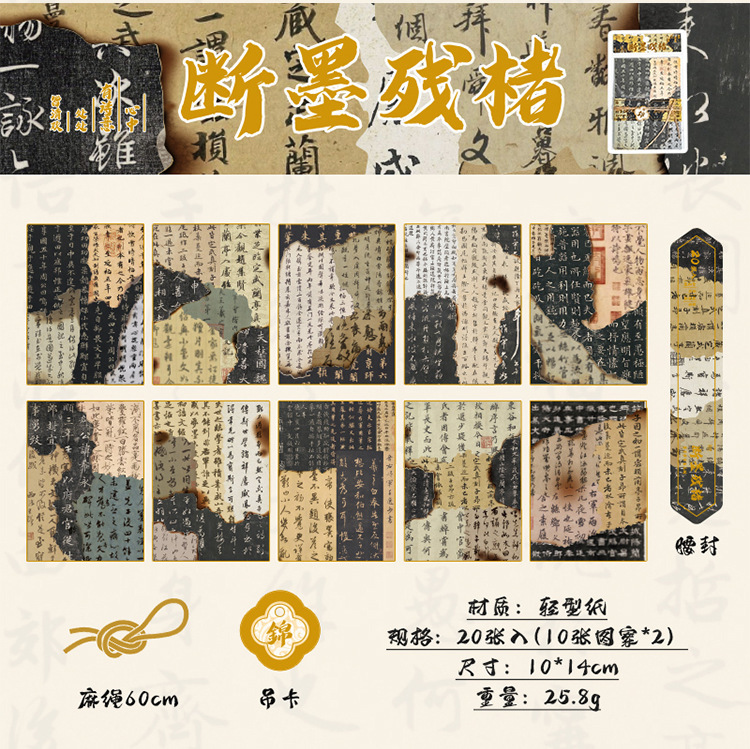 Китайский стиль Материальная бумага Чернильная ароматическая книга Серия древнего стиля Журнал с сожжённым текстом Декоративная основная бумага