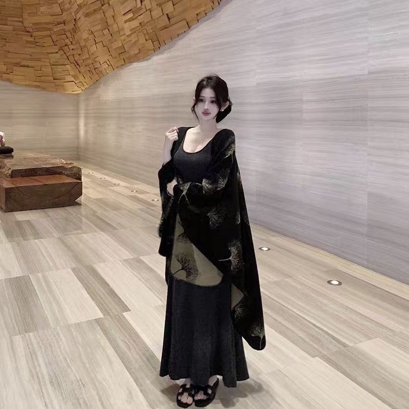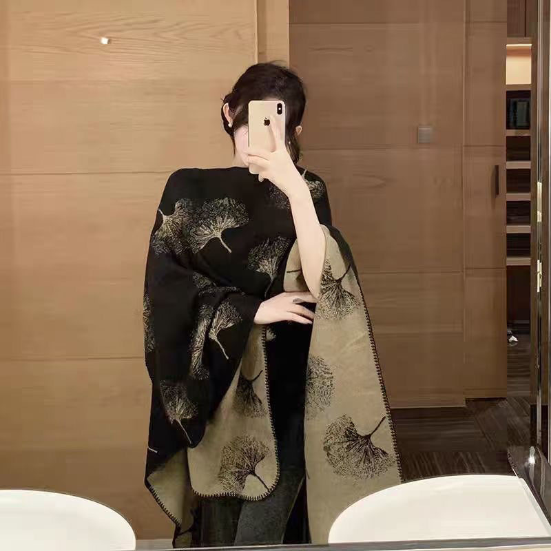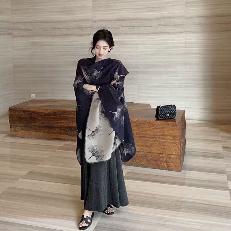 Шаль для путешествий с абрикосовыми листьями для женщин, высококлассный плащ, художественный плащ с разрезами, двусторонняя шаль для тепла