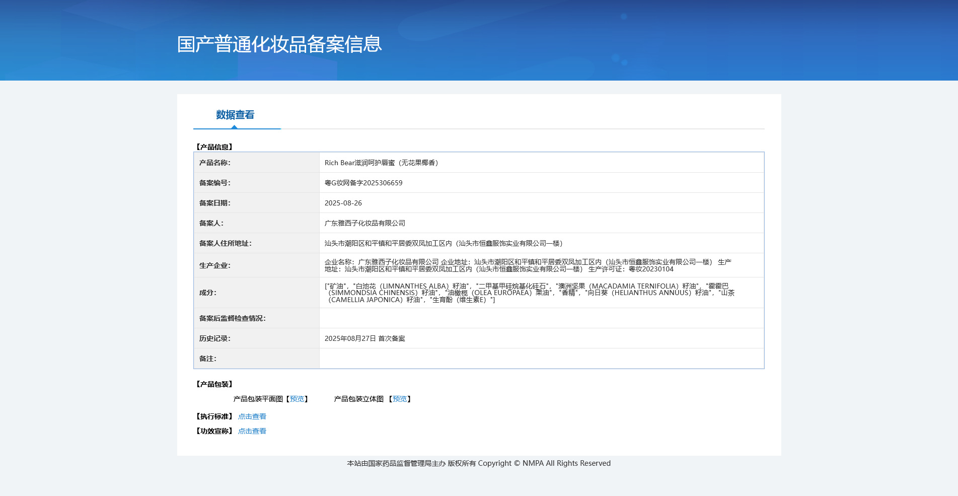 Номер сертификата регистрации несpecial косметики Guangdong g makeup network preparation number 2025306659