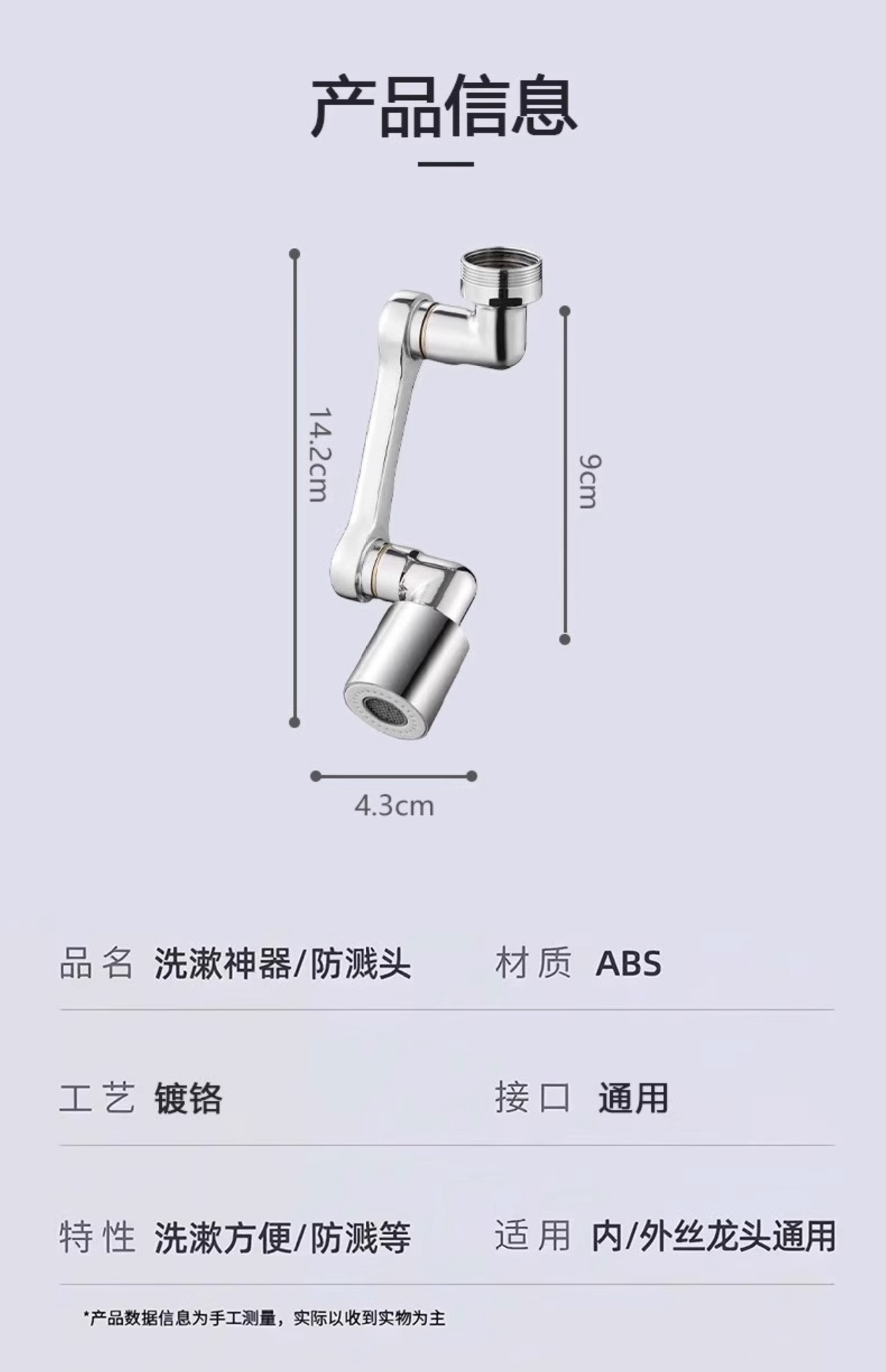 ![]() | Silver | Upgraded model [1 pack] universal single-speed water outlet | ¥1.95 / ≈ 23 ₽ | 23024 | 6093251115708 | |