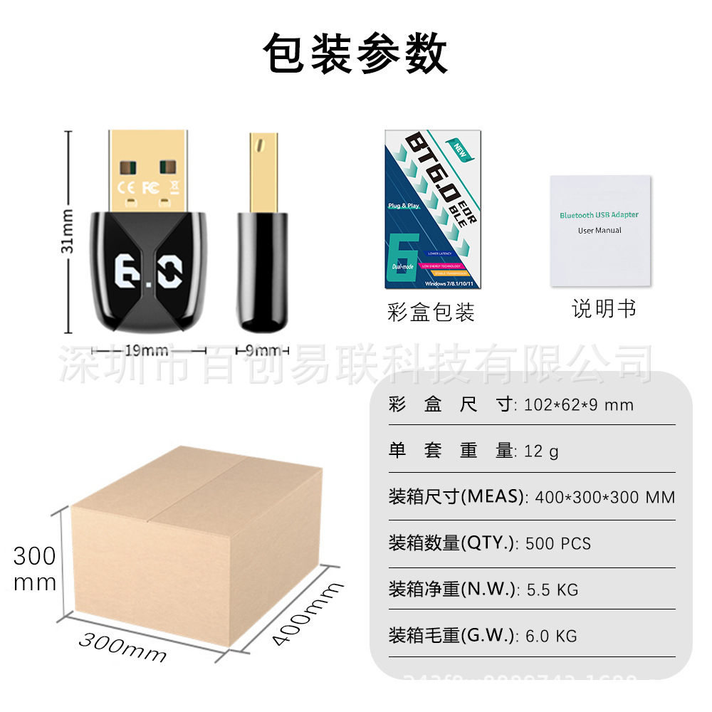 Кросс-граница Bluetooth 6.0 адаптер USB для компьютера Bluetooth гарнитуры аудиосоединение AAC/SBC