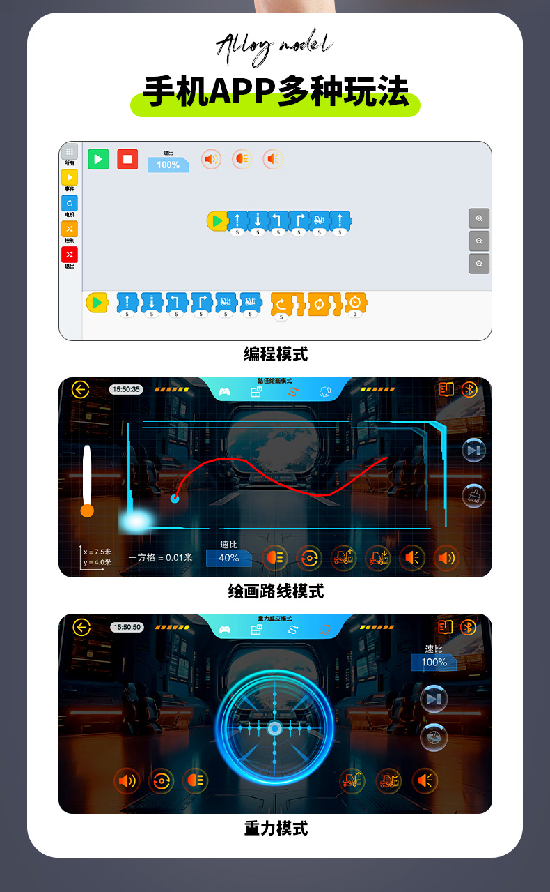 3、支持APP手机连接遥控,多种玩法