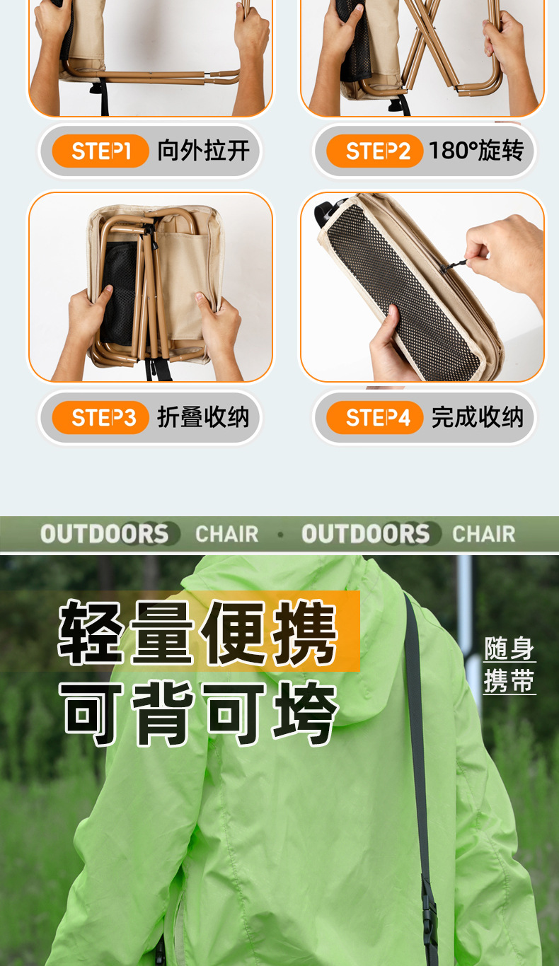 Складной стул Source Factory с сумкой для переноски, туристический стул для кемпинга, портативный рюкзак, стул через плечо