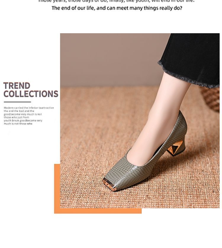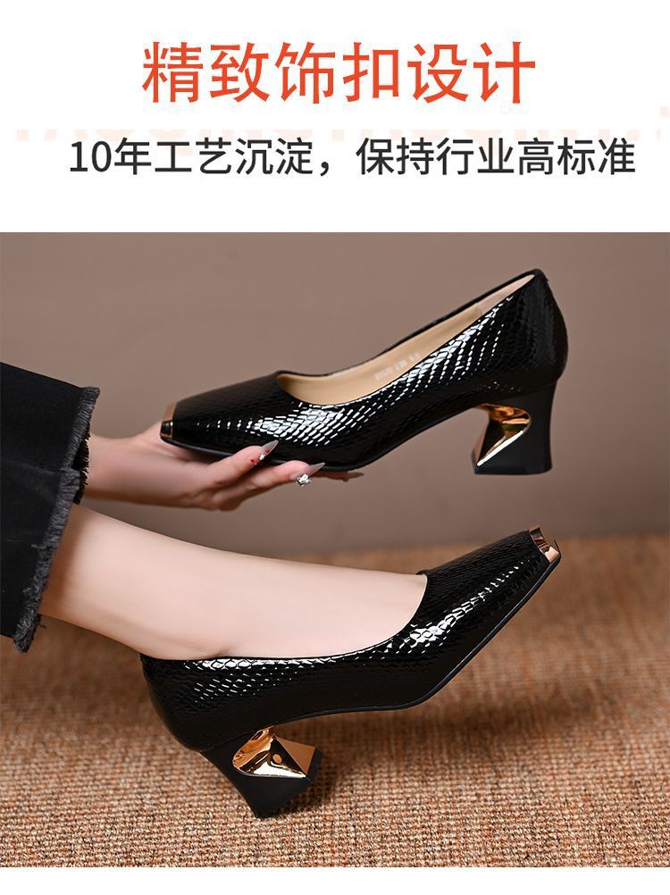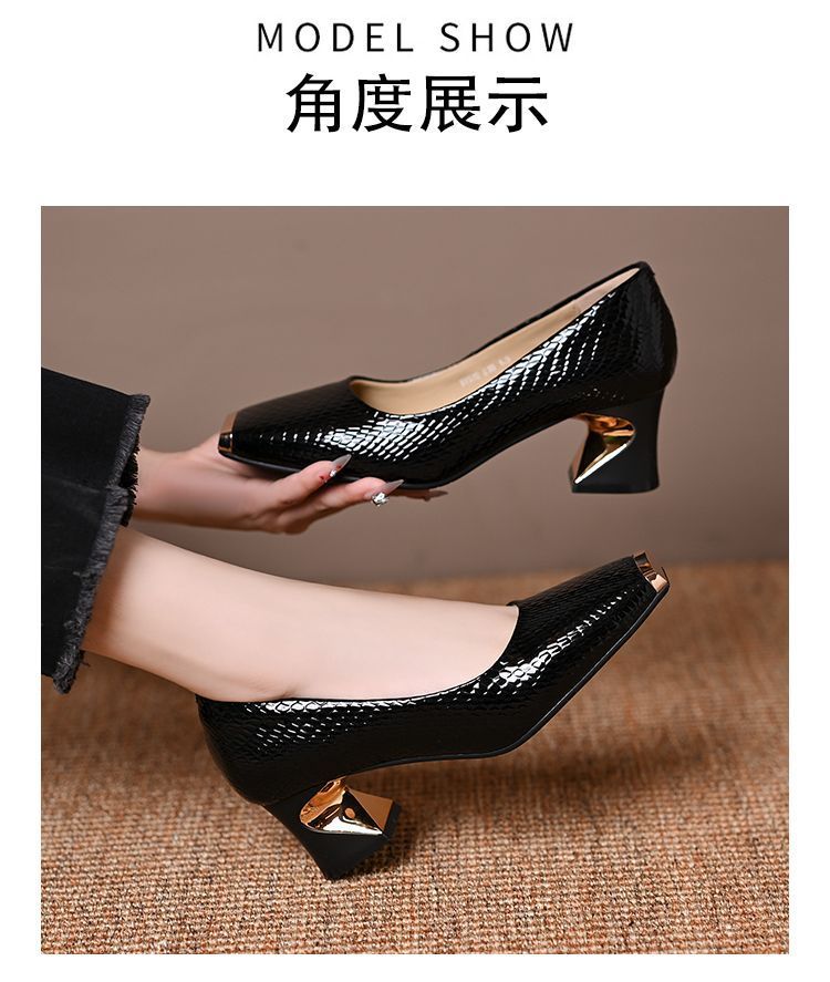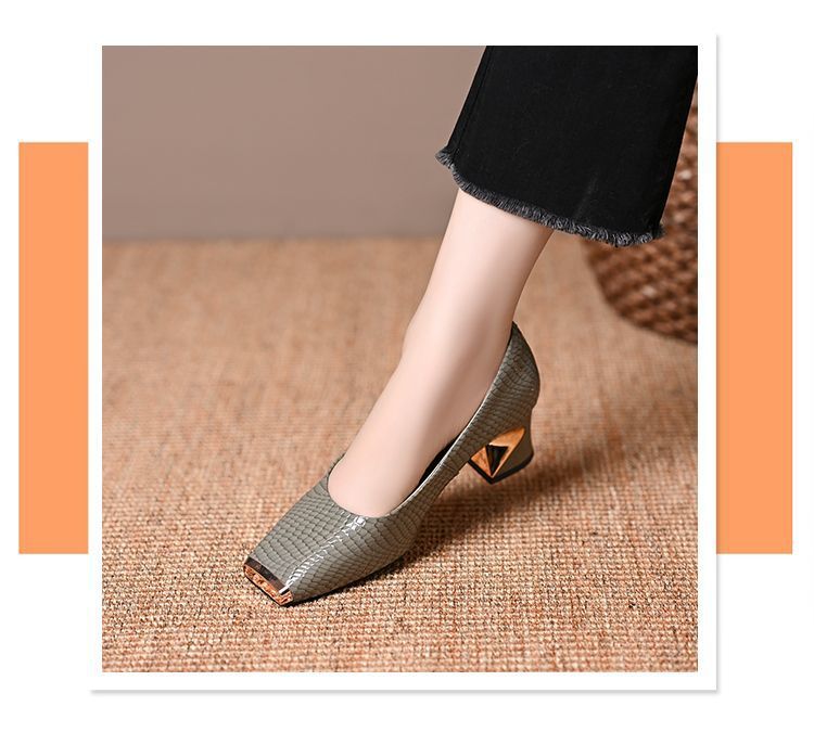 Туфли с металлическим носком в змеиный узор для женщин, весенне-осенний французский стиль, толстый каблук, универсальные удобные маленькие кожаные туфли