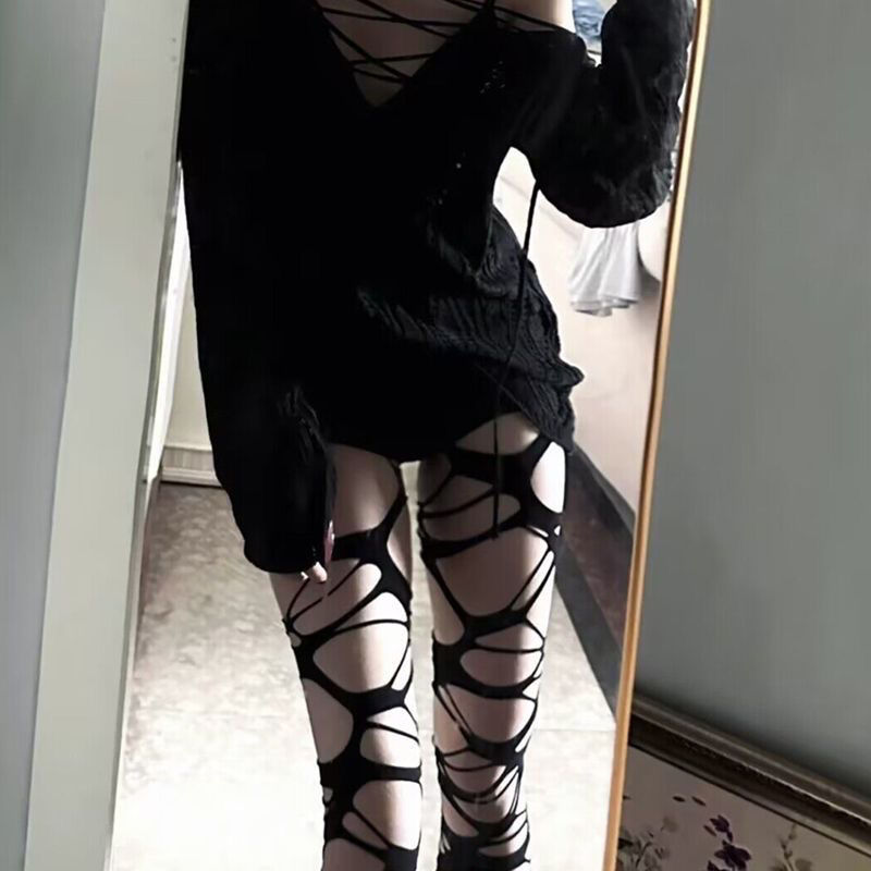 Домашние Готические Панк Чулки Сексуальные Субкультуры Черные Разорванные Чулки Колготки Сетчатые Чулки