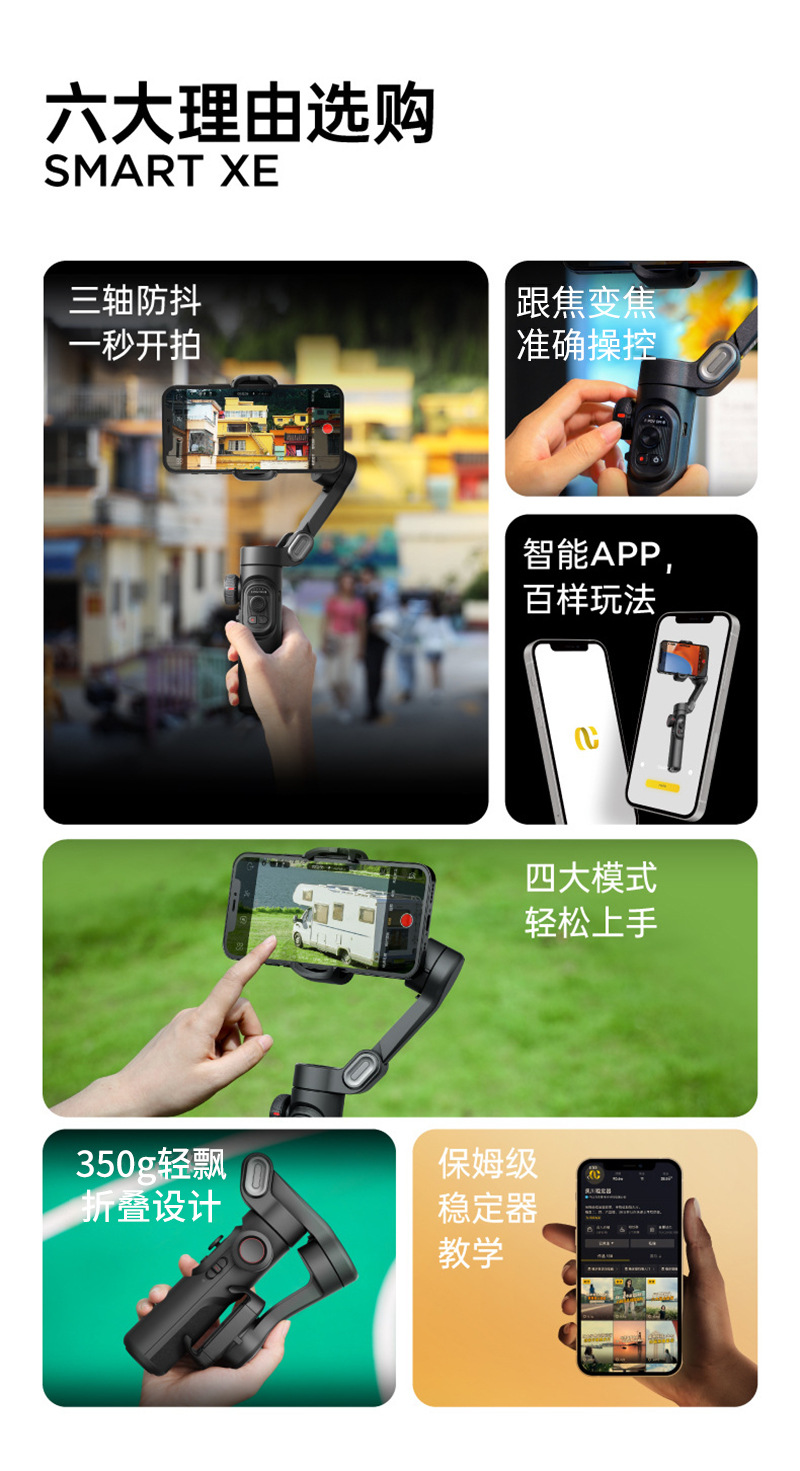 Новый смарт-стабилизатор для мобильного телефона Xe, интеллектуальное анти-качка, отслеживание лица, складной трехосевой ручной гимбал