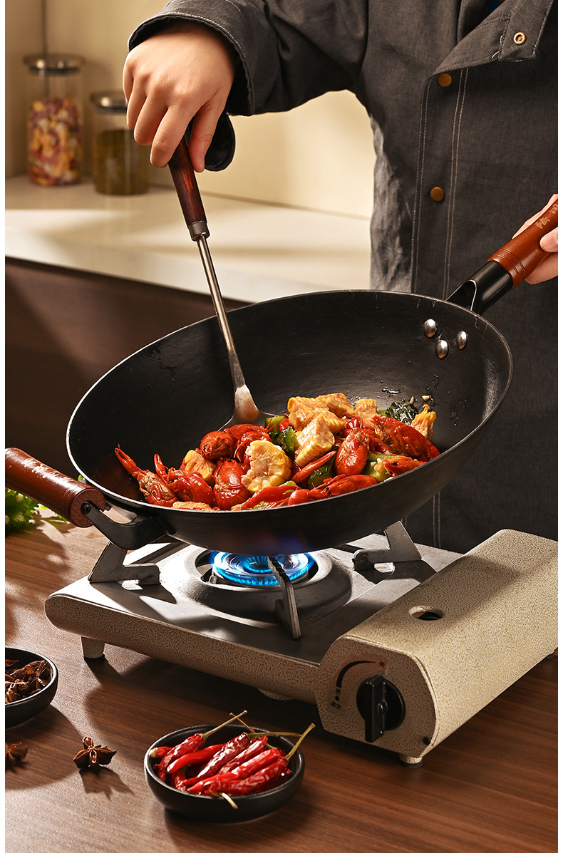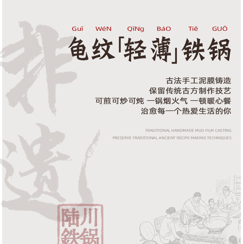 Чугунная кастрюля Lu Chuan с узором черепахи, легкая кастрюля для домашнего использования, традиционная антипригарная сковорода без покрытия для газовой плиты