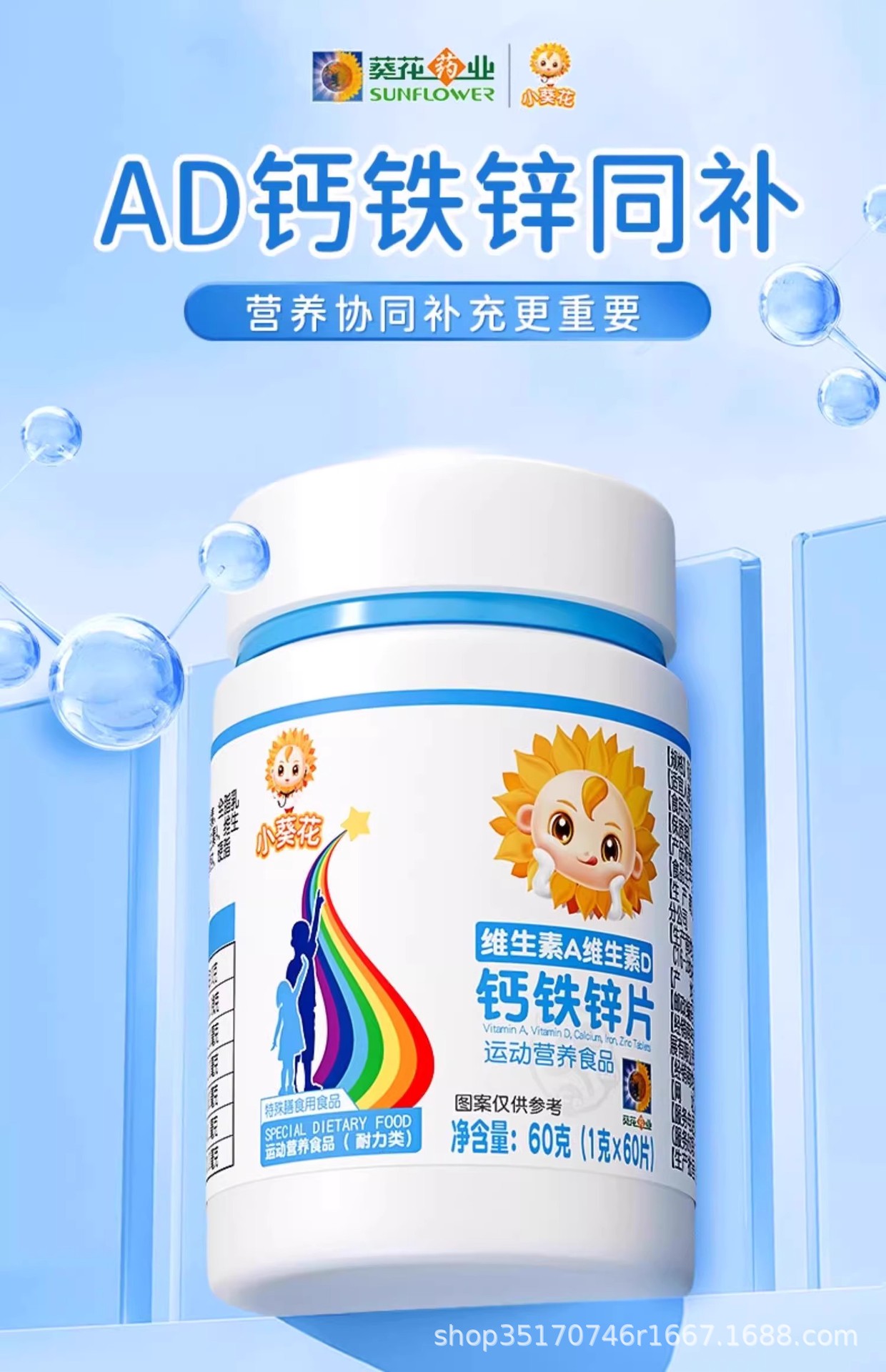 Жевательные таблетки Little Sunflower витамина A, D, кальция, железа и цинка, добавка кальция, добавка железа, добавка цинка для детей и подростков, помогает росту и развитию
