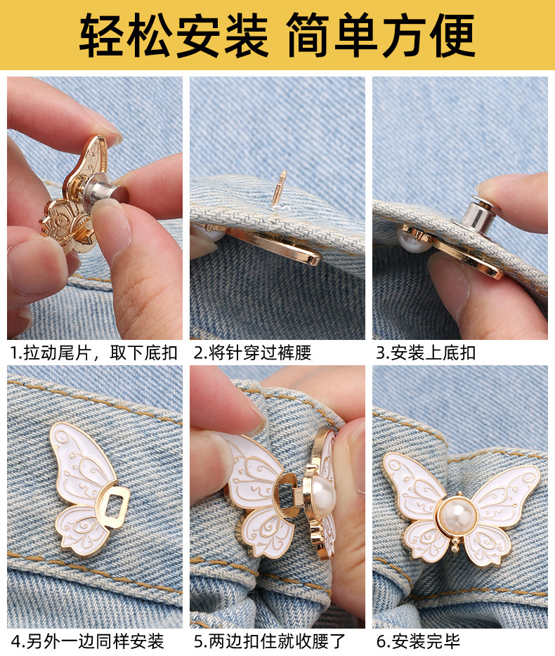 Бабочка на талии, съемная застежка без шитья для уменьшения размера джинсовой талии