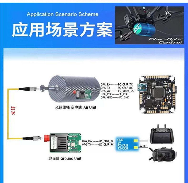 Специальный волоконно-оптический модуль для дронов, Ttl оптический трансивер, 1-канальный видео на волоконную оптику, Sky + Ground, встроенный FC