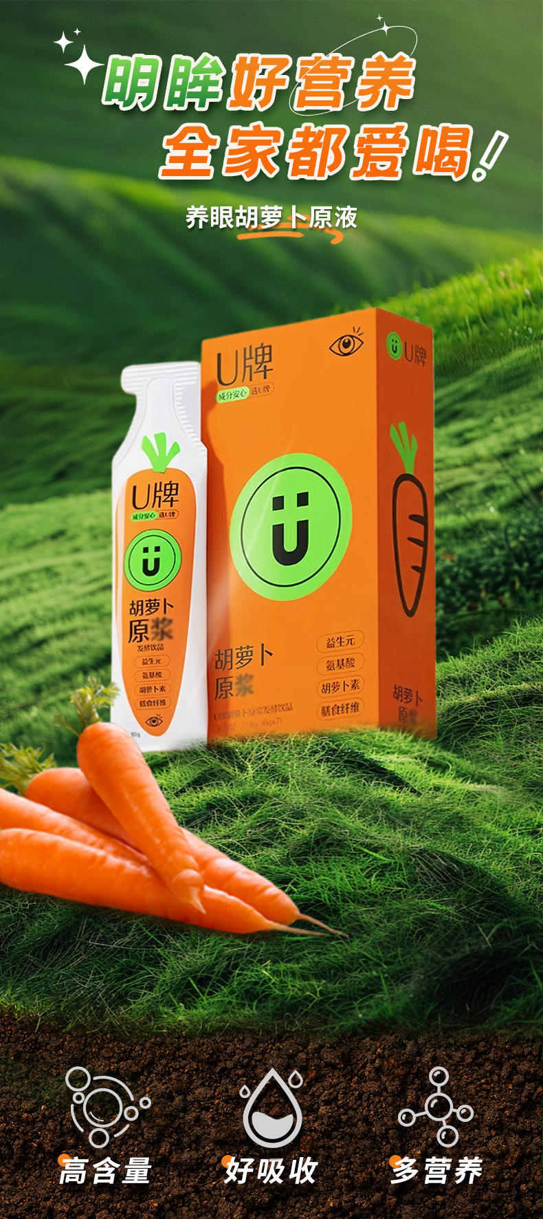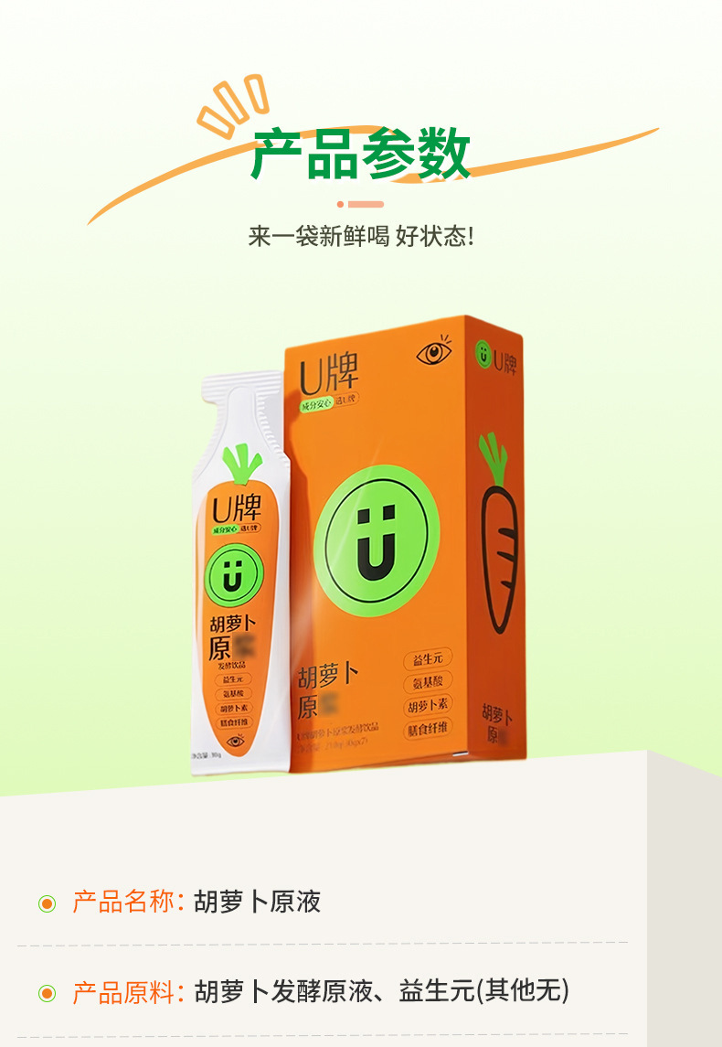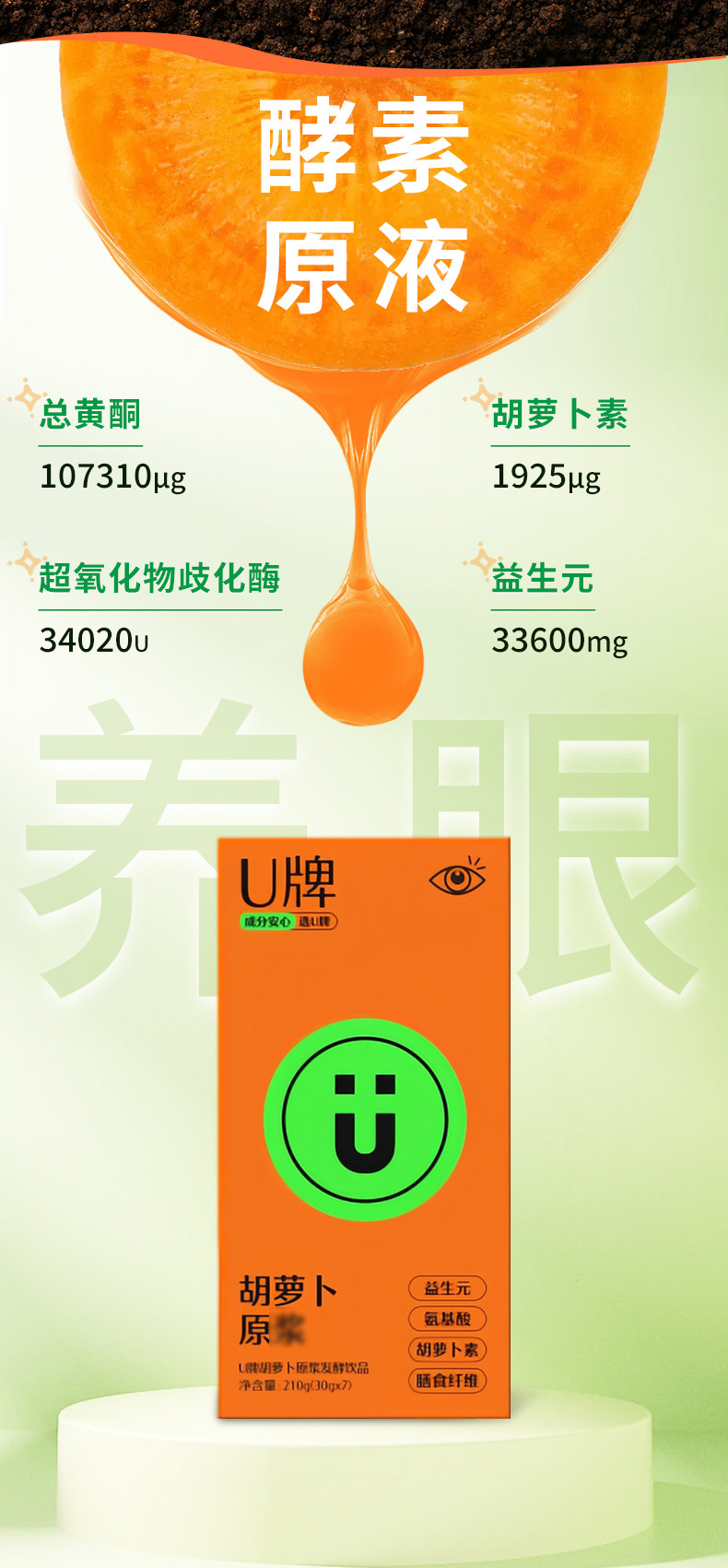 Жидкий фермент моркови U Brand для студентов, работающих допоздна, защита глаз, пробиотики моркови, пюре из фруктов и овощей перед сном