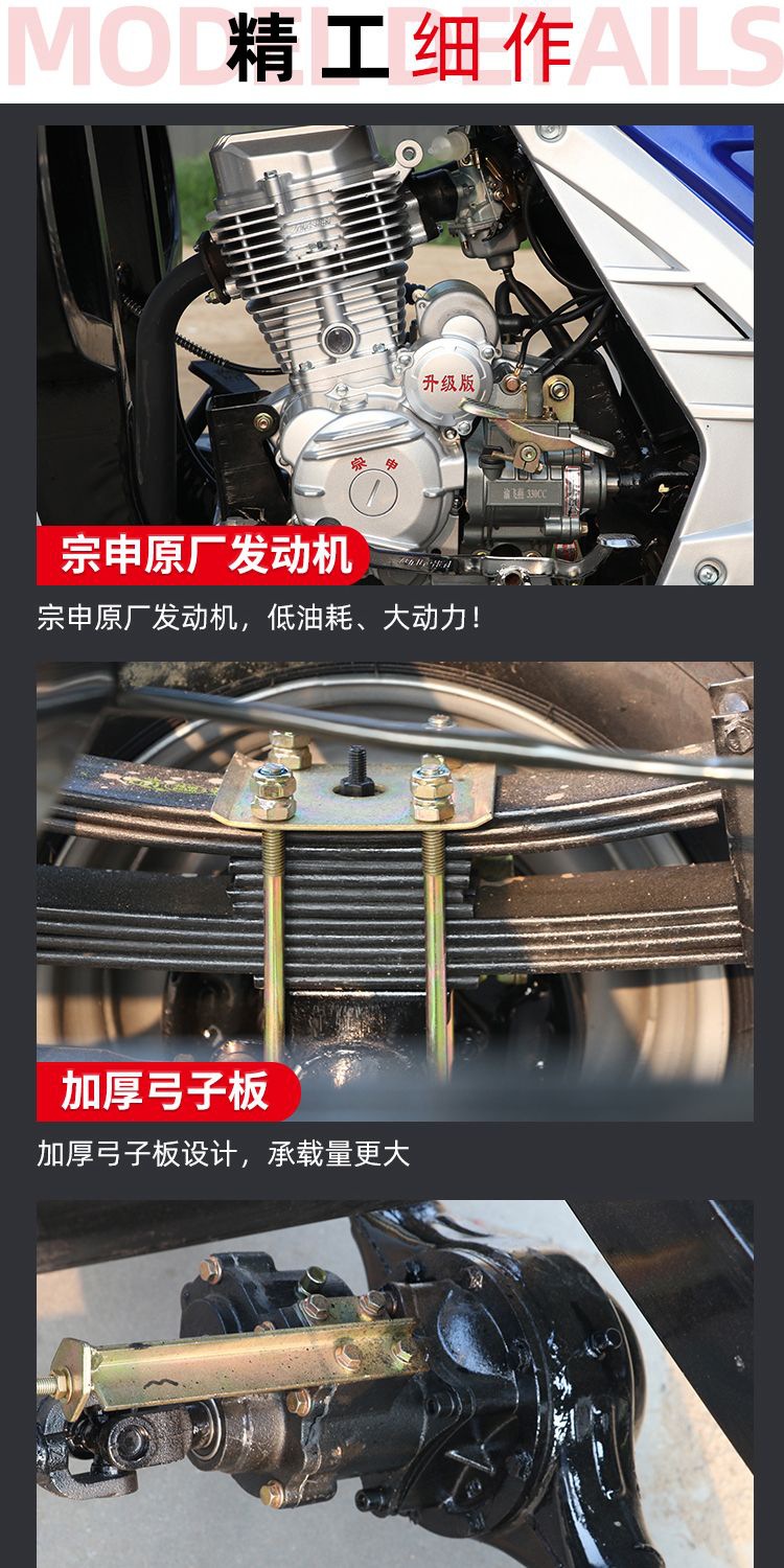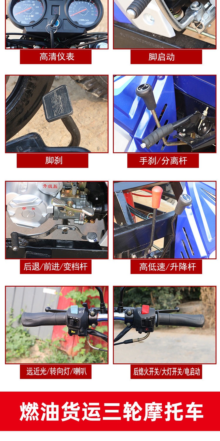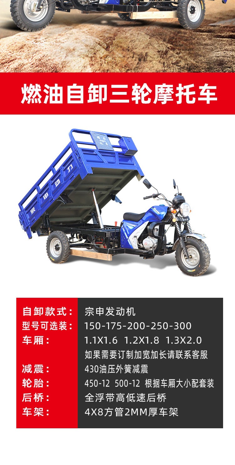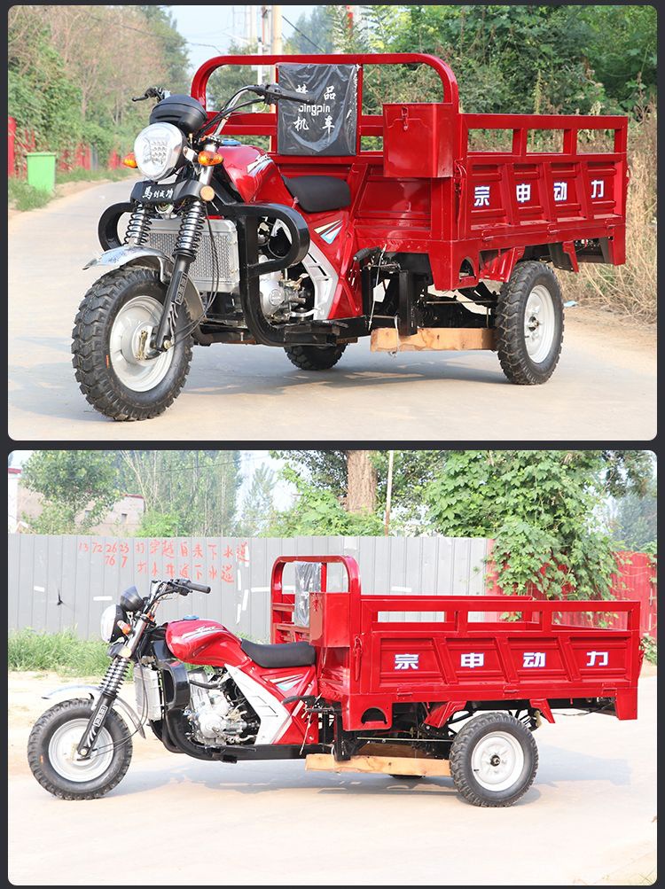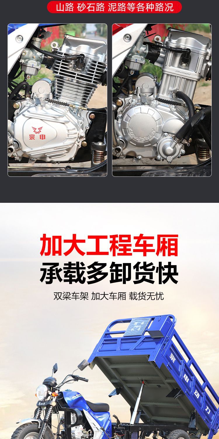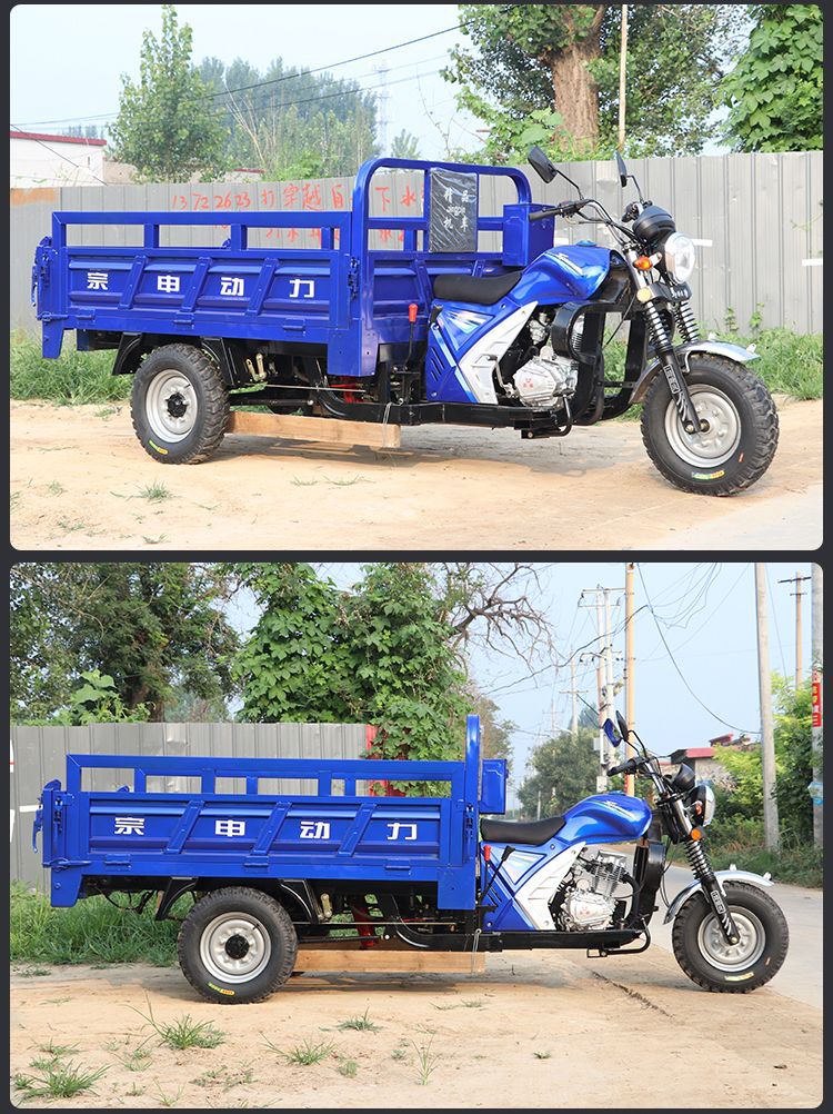 Трехколесный бензиновый мотоцикл Сельскохозяйственный тяжелый трехколесный мотоцикл Zongshen Power Самосвальный грузовик Топливный транспорт