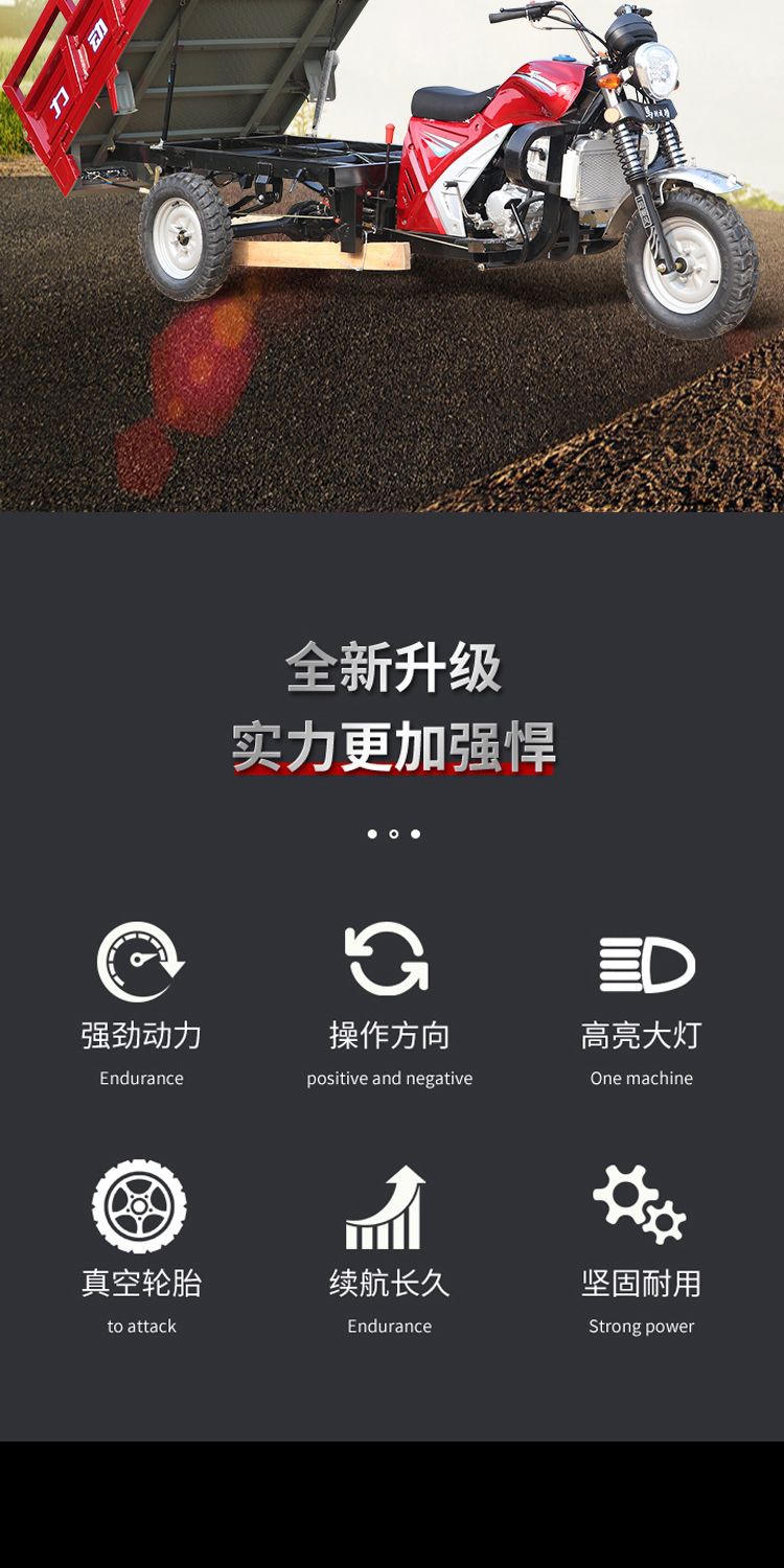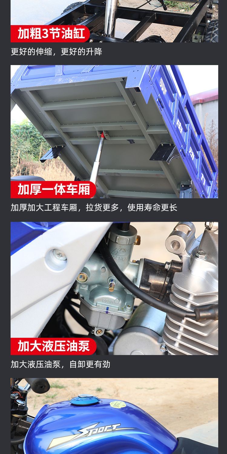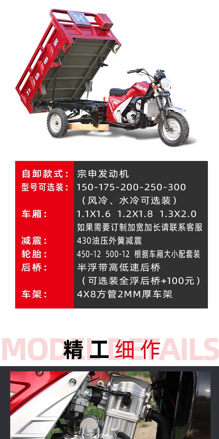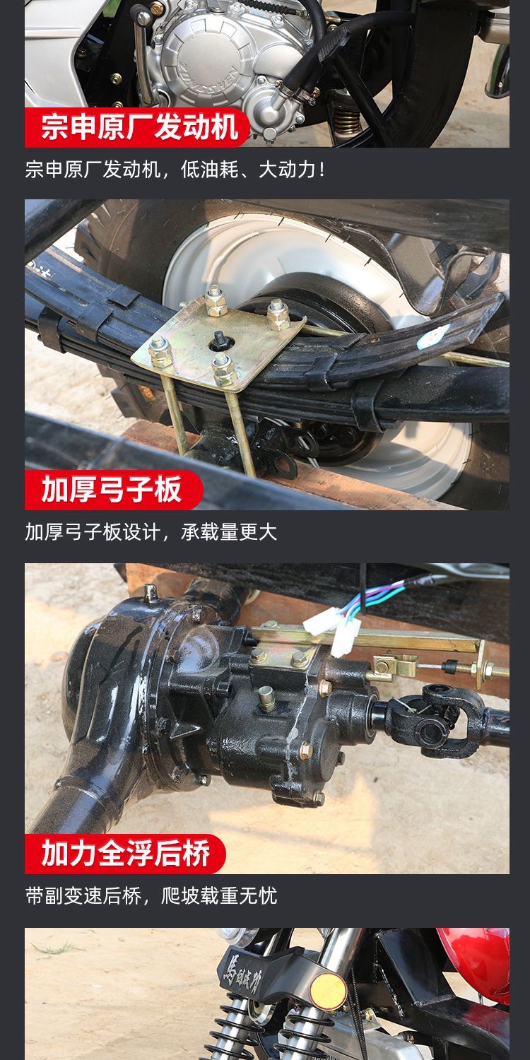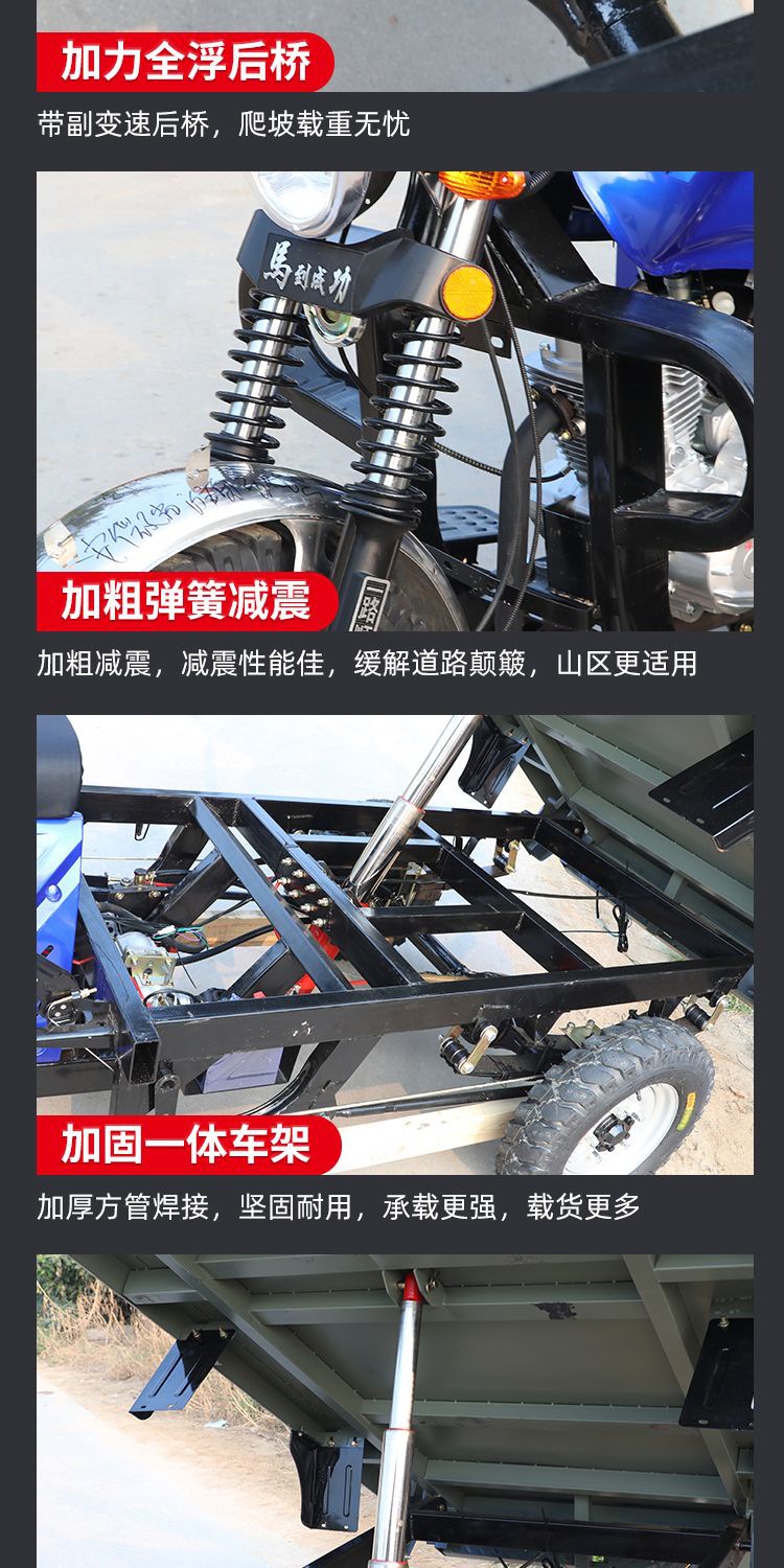 Трехколесный бензиновый мотоцикл Сельскохозяйственный тяжелый трехколесный мотоцикл Zongshen Power Самосвальный грузовик Топливный транспорт