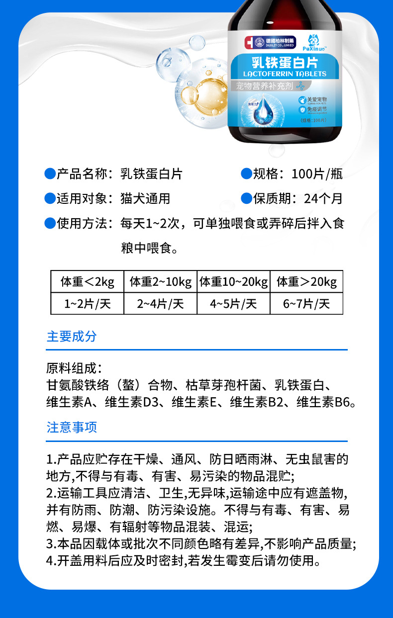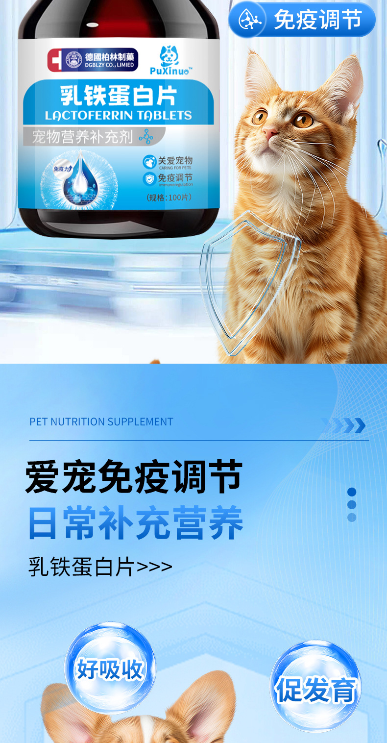 Puxinuo таблетки лактоферрина для домашних животных 100 таблеток, производитель нутриционных добавок оптовая продажа