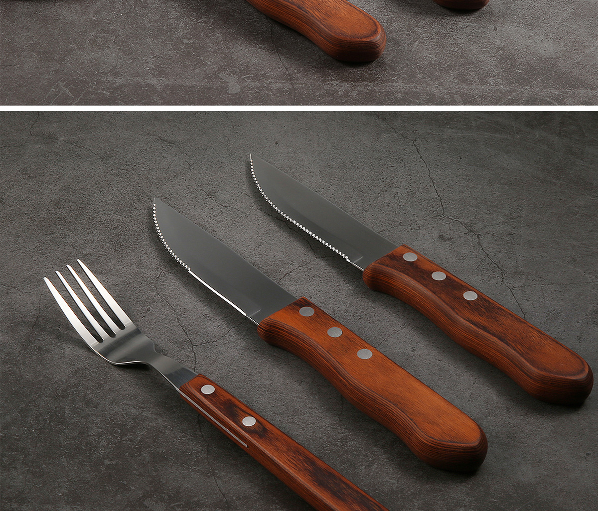 Фабричная кастомизированная столовая посуда для отелей, нож для барбекю, большой нож для мяса, американский большой стейк-нож, большой цветной деревянный бразильский кофейный стейк-нож