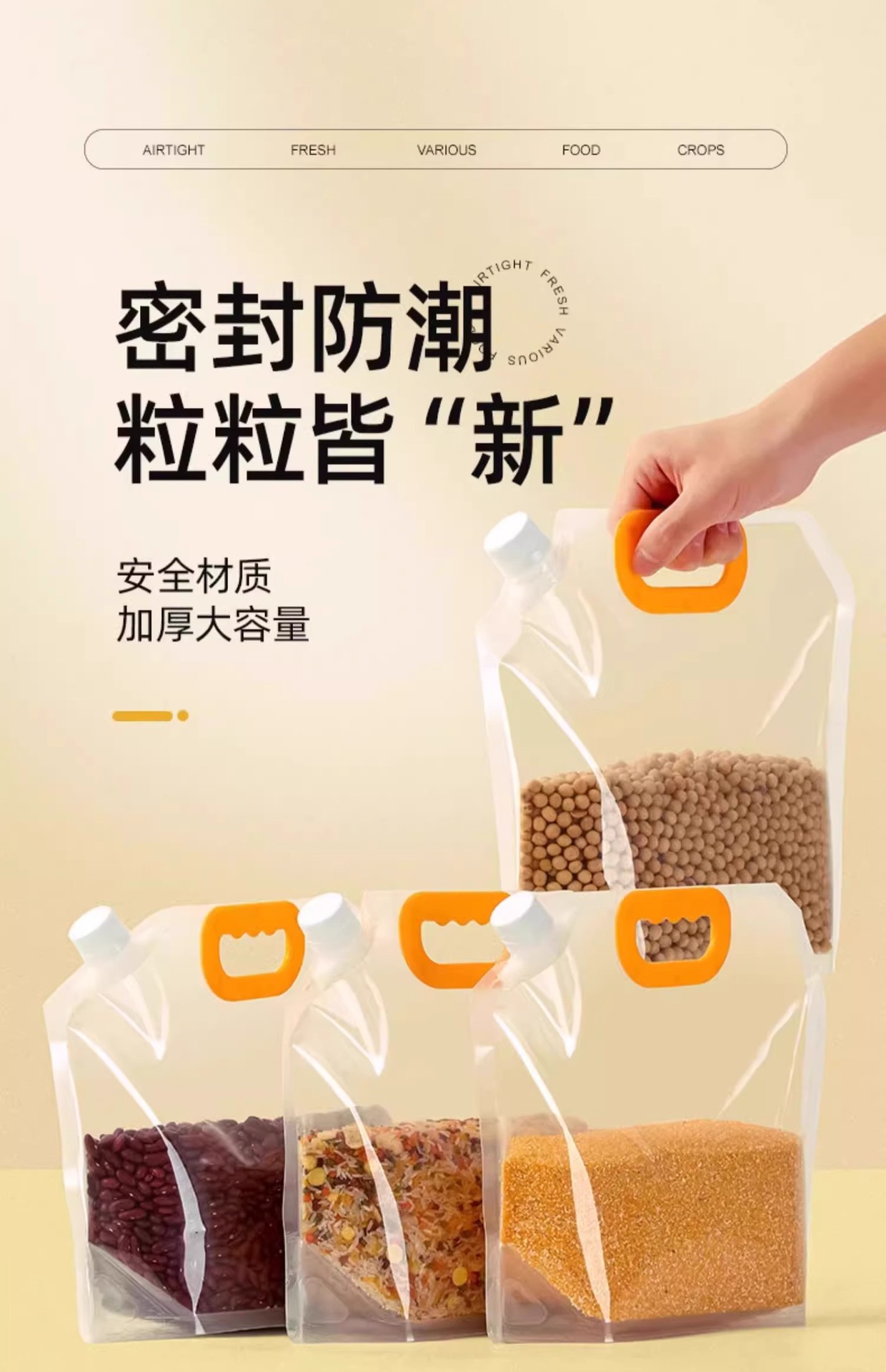 Герметичные пакеты для хранения зерна, влагозащитные, защищенные от насекомых, прозрачные, утолщенные, с ручками, для домашнего использования, подходят для хранения красной фасоли и риса