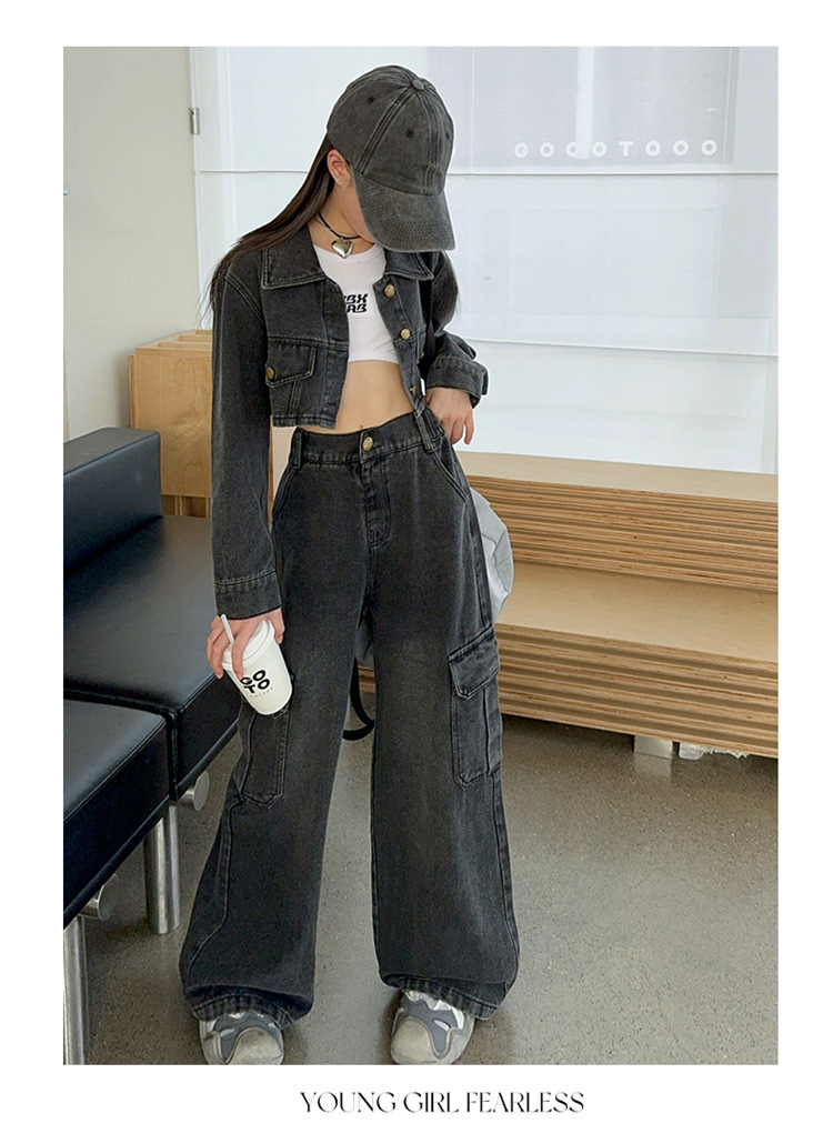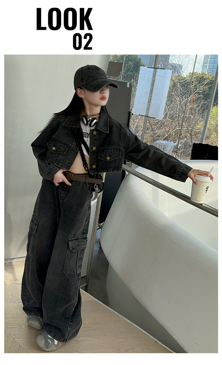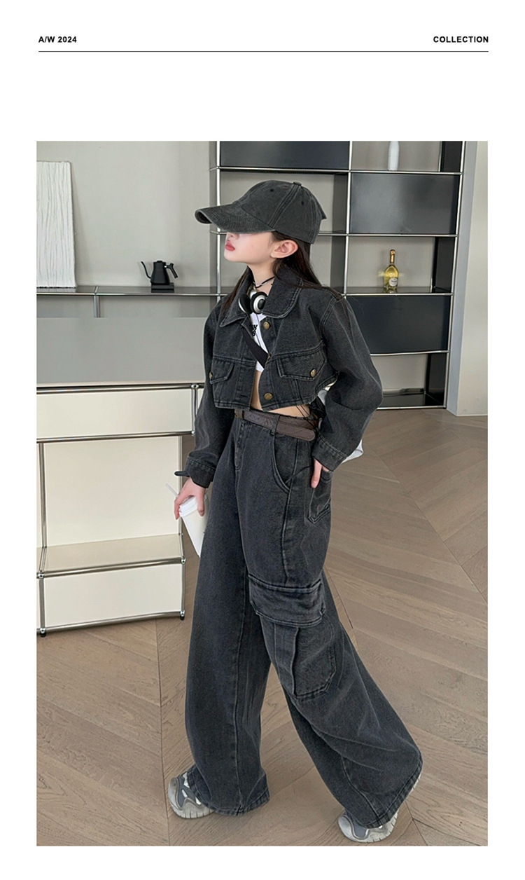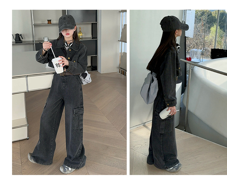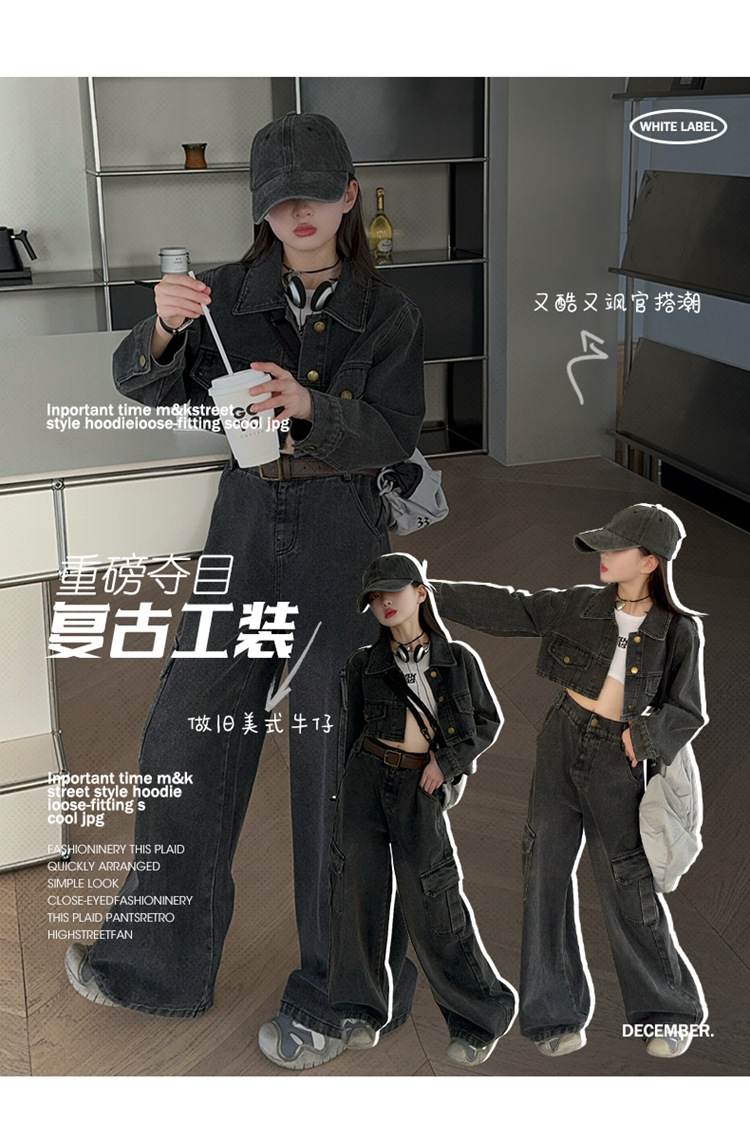 Оптовая продажа кросс-бордерных костюмов для девочек на осень 2025 Новые джинсовые куртки для детей и старших детей, можно отправить одним комплектом