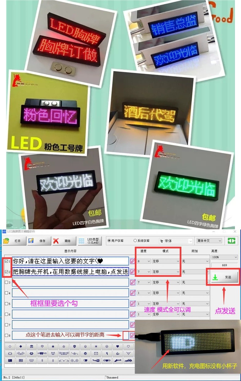 Светящийся LED-табличка с именем, цифровая прокрутка для бара KTV, светящийся значок для работы, свет для вождения вина