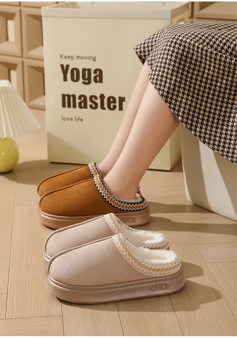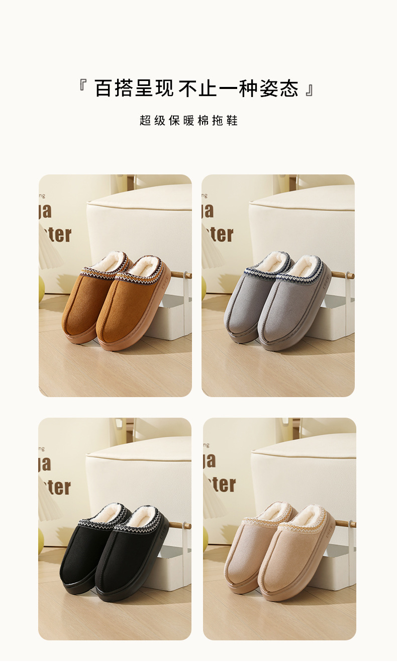 Кросс-бордерные новые осенние и зимние однотонные модные хлопковые тапочки для женщин оптом, толстосолые домашние теплые тапочки на зиму