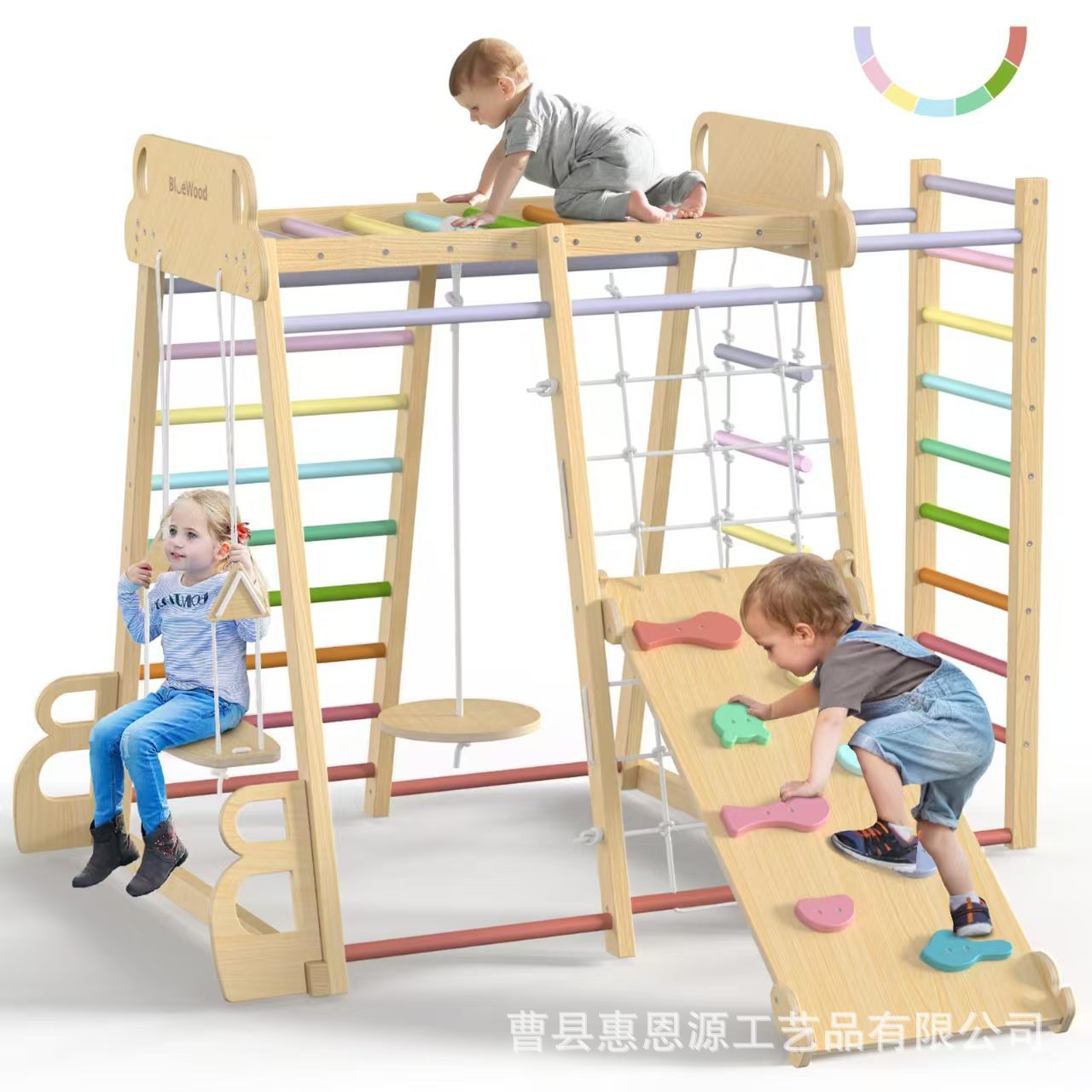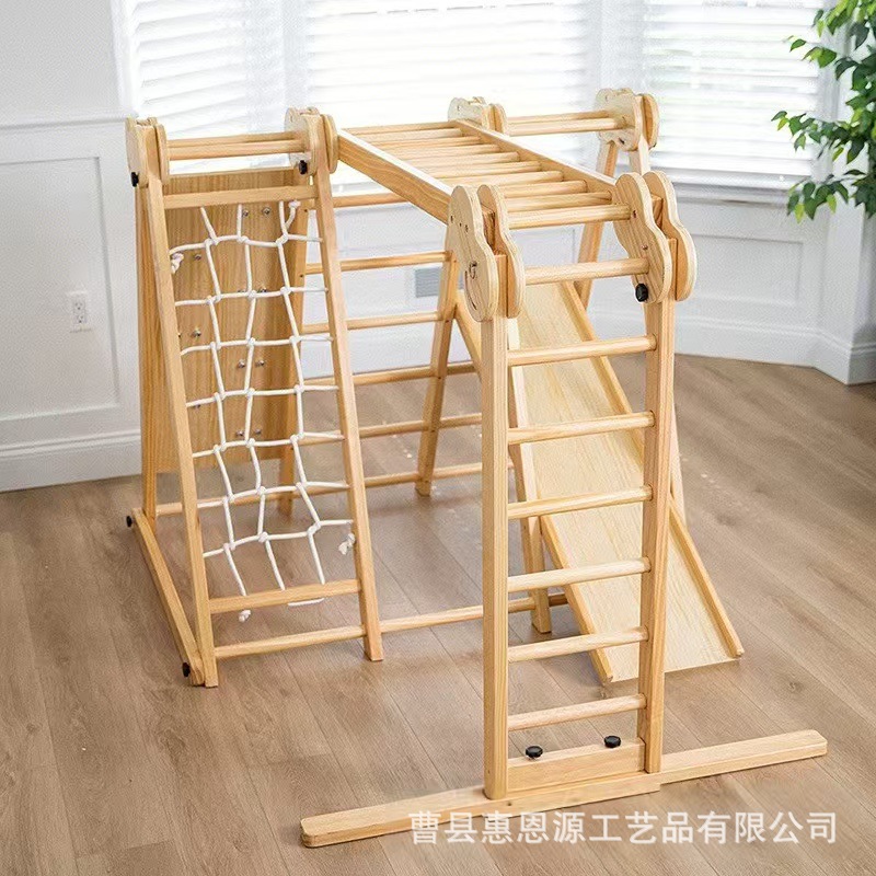 Детское спортивное оборудование, сенсорное обучение, внутренняя лазательная рама из массива дерева, комбинация слайда и лазательной лестницы